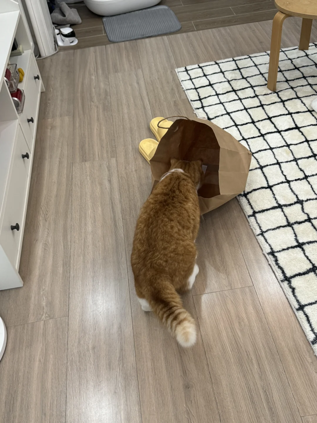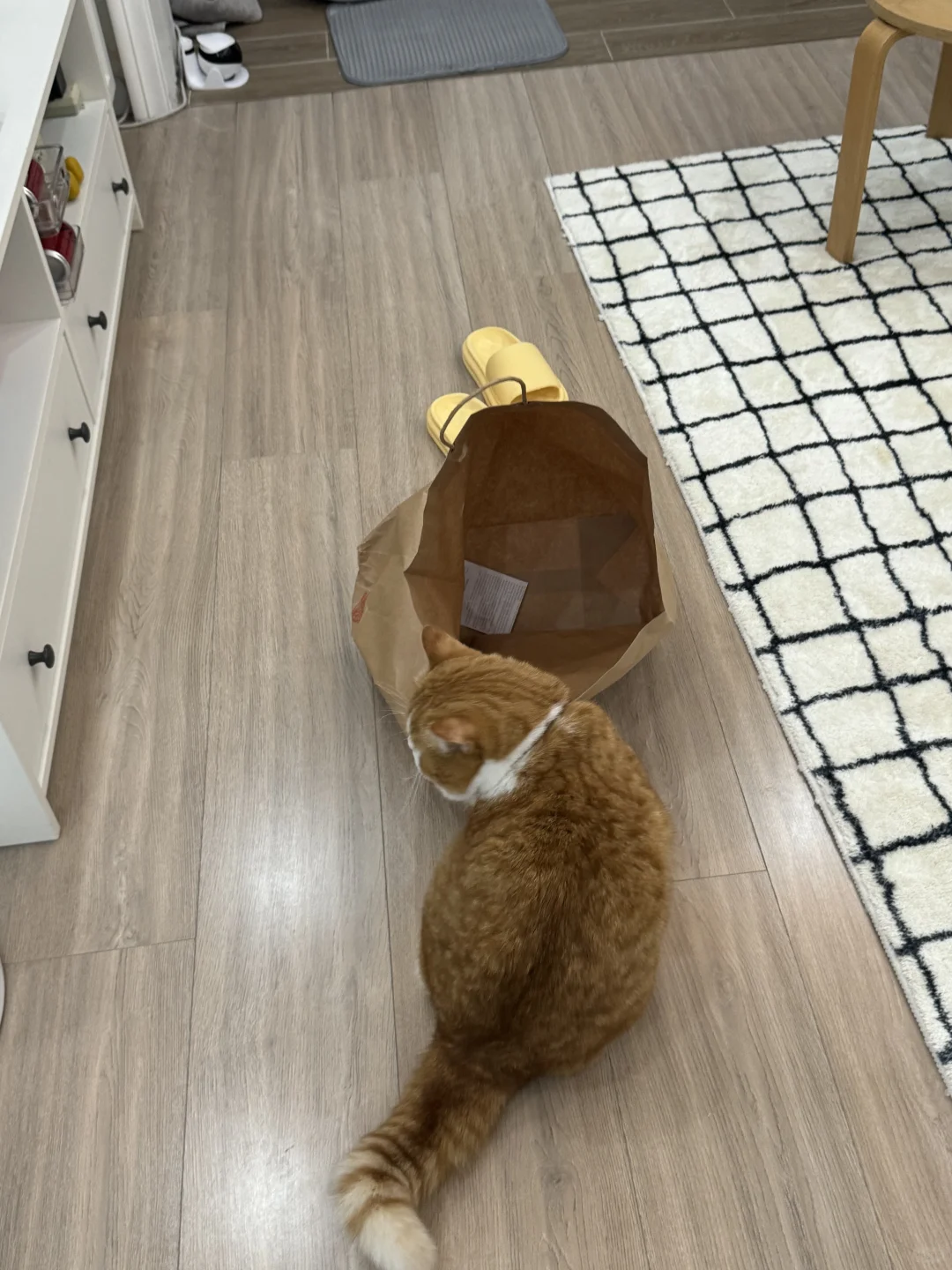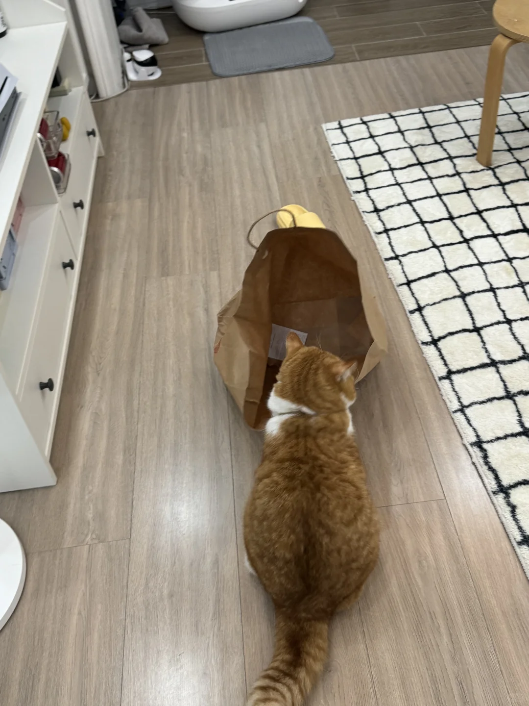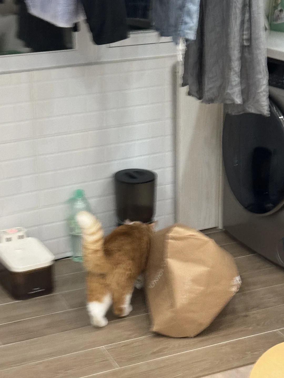 本来在玩袋子 头刚伸进去提手的地方 卡住了 进退两难中 放饭的钟声响了!!!!! 管不了那么多了! 戴着袋子就是冲 吃饭吃饭吃饭!!!!!!!