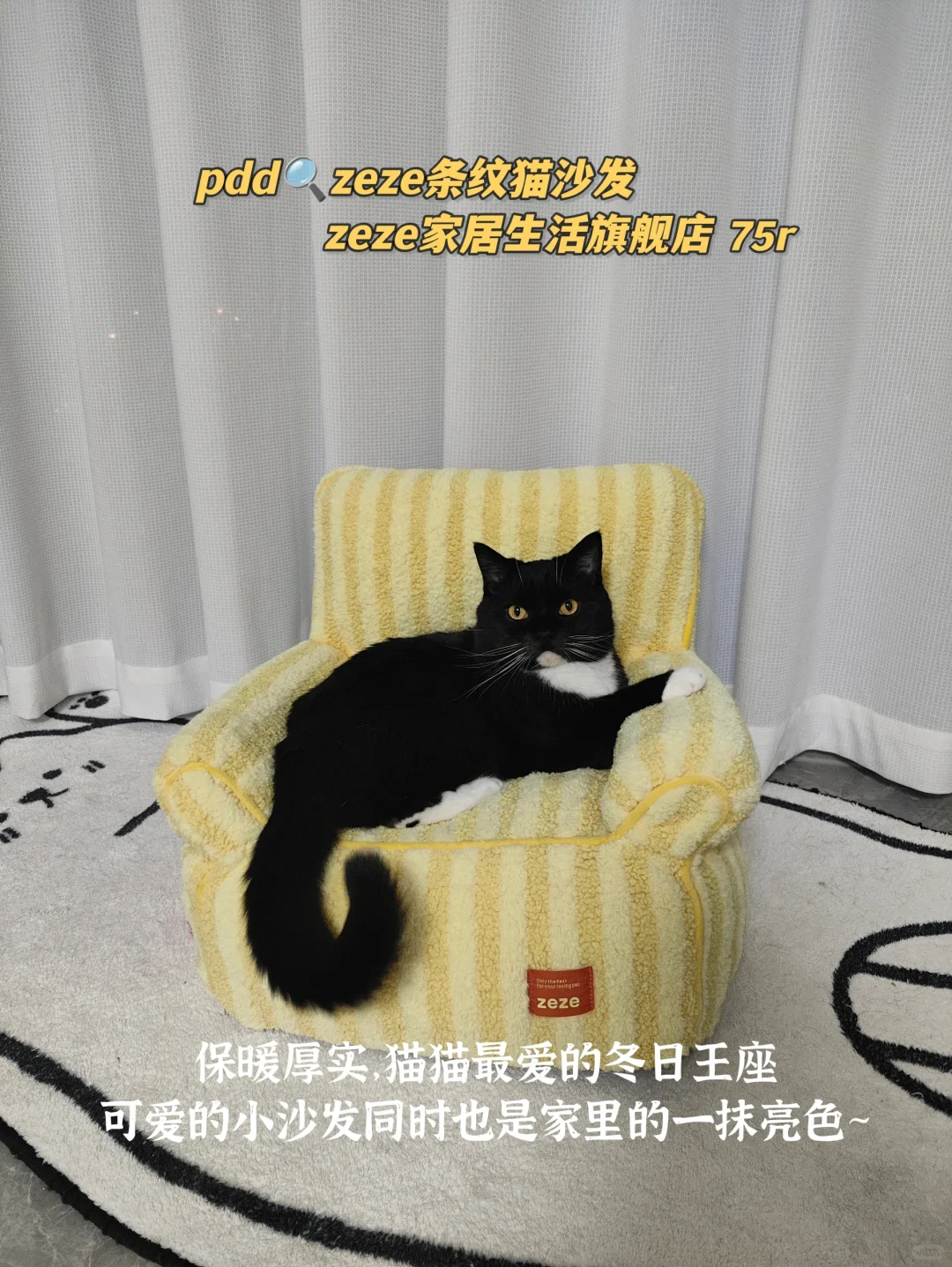 冬天啦,各位猫妈要给崽崽做好保温工作哦!一些我在拼多多买到的冬日好物分享给各位养猫人。 pdd🔍宠物酸奶辅食机 西为家居生活专营店 22r 宠物加热水碗平替版 可以一直保持水温三十度左右,猫猫更爱喝水,独立内胆容易清洗 pdd🔍ZeZe条纹猫沙发 zeze家居生活旗舰店 75r 保暖厚实,猫猫最爱的冬日王座 可爱的小沙发同时也是家里的一抹亮色! pdd🔍猫隧道玩具 吉仔仔宠物用品官方旗舰店 102r 可睡可玩的猫咪隧道,猫猫捉迷藏必备道具哈哈,是冬日温暖猫窝的同时给猫咪增加玩要乐趣