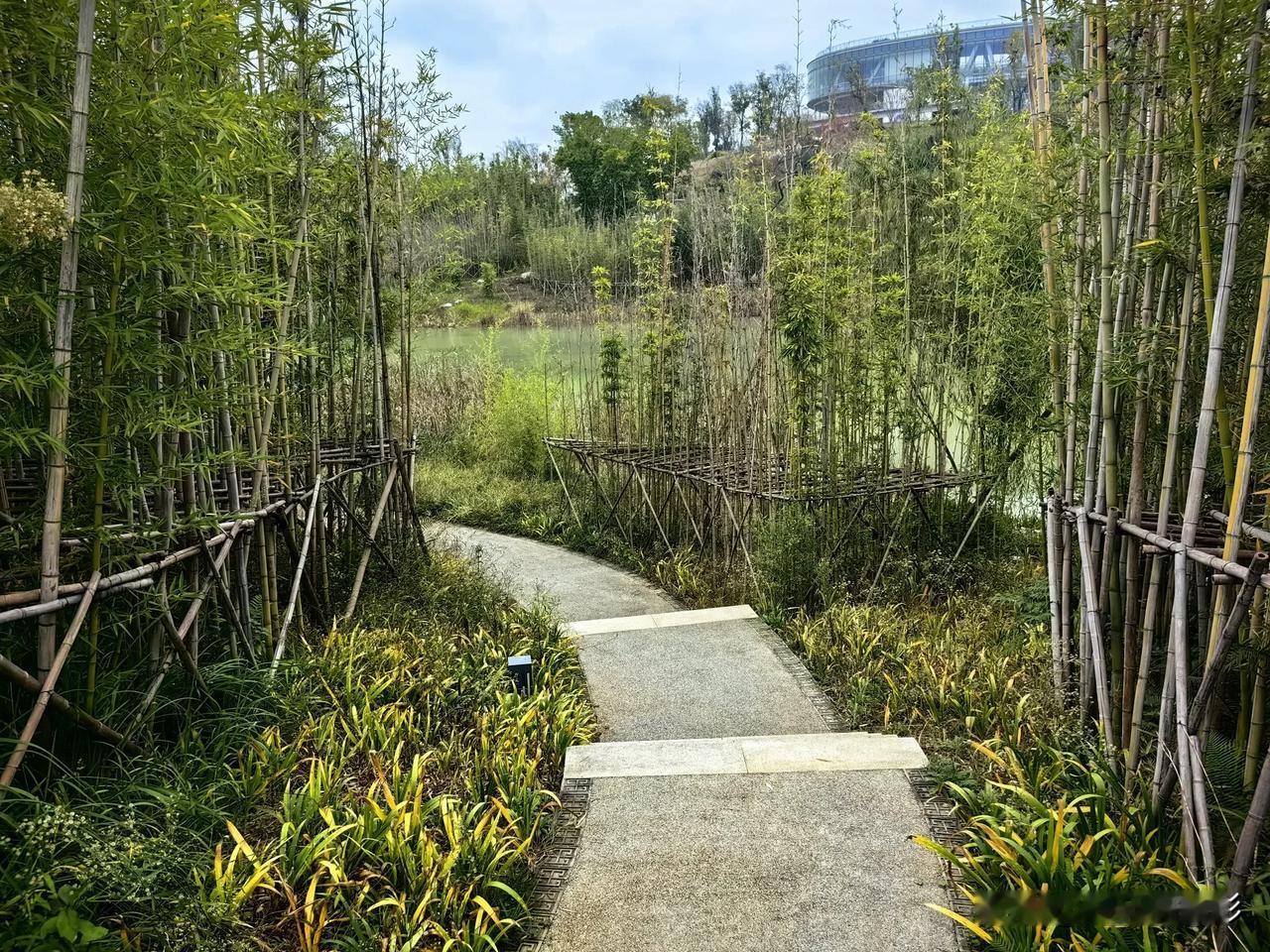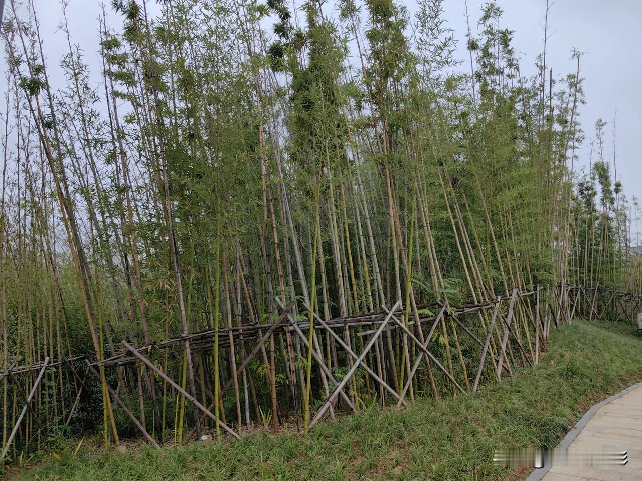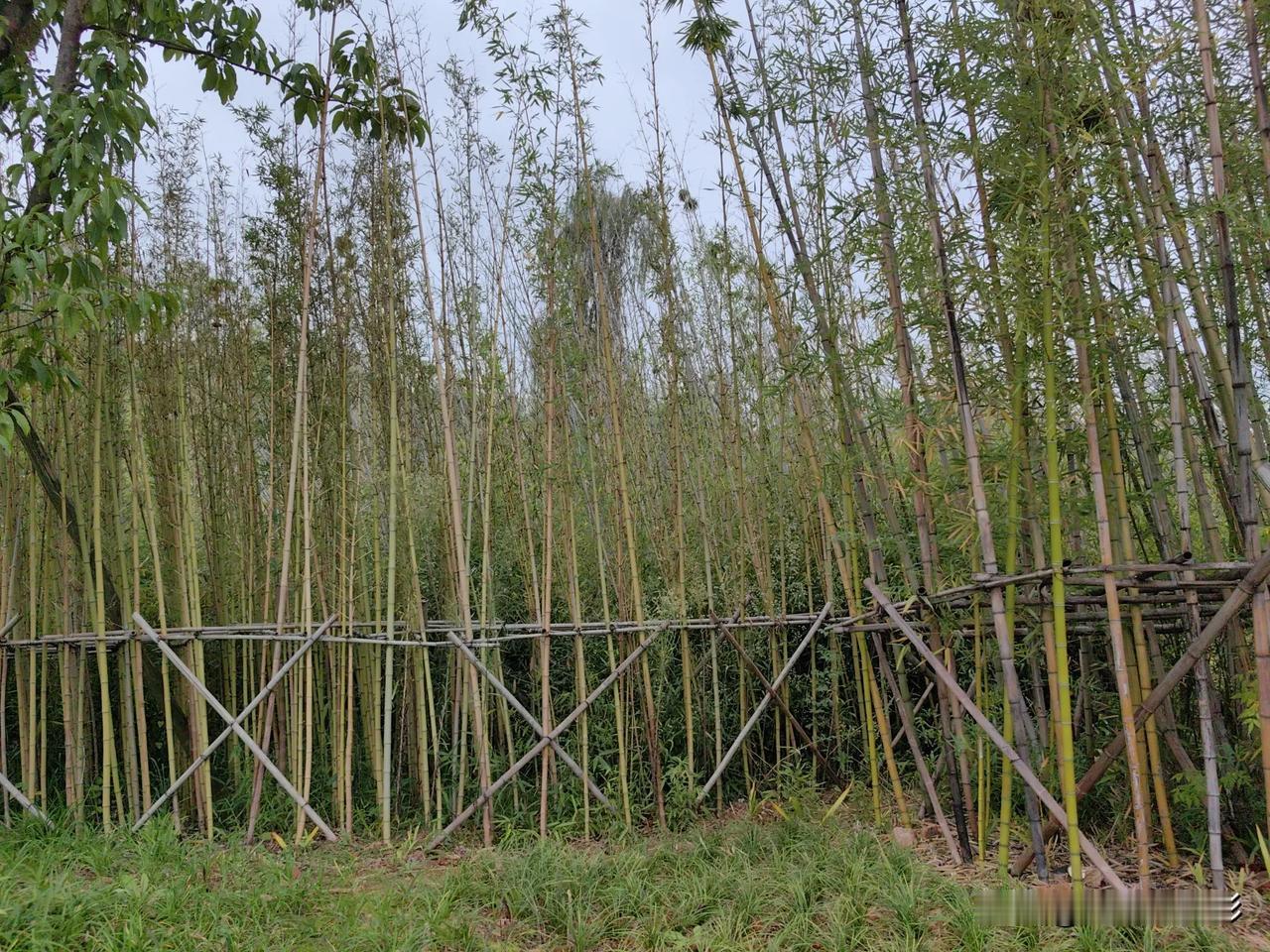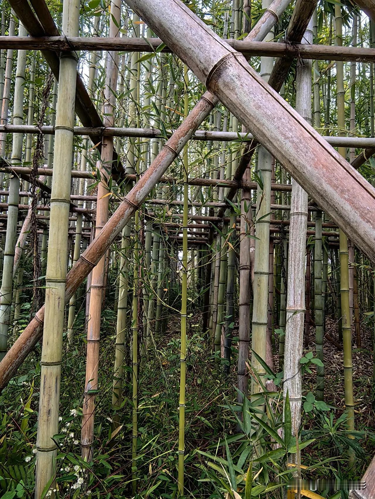 第一次看到成排成行的竹林 原本它们全靠自家兄弟(竹杆)互相支撑[大笑][大笑],所以这竹林看起来总有点不自然。平常所见竹林多为错落有致,疏密有间,哪见过如此整齐的!