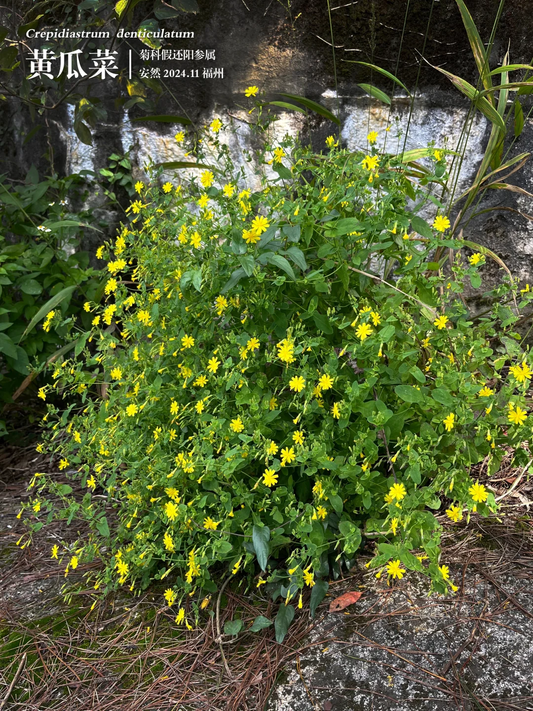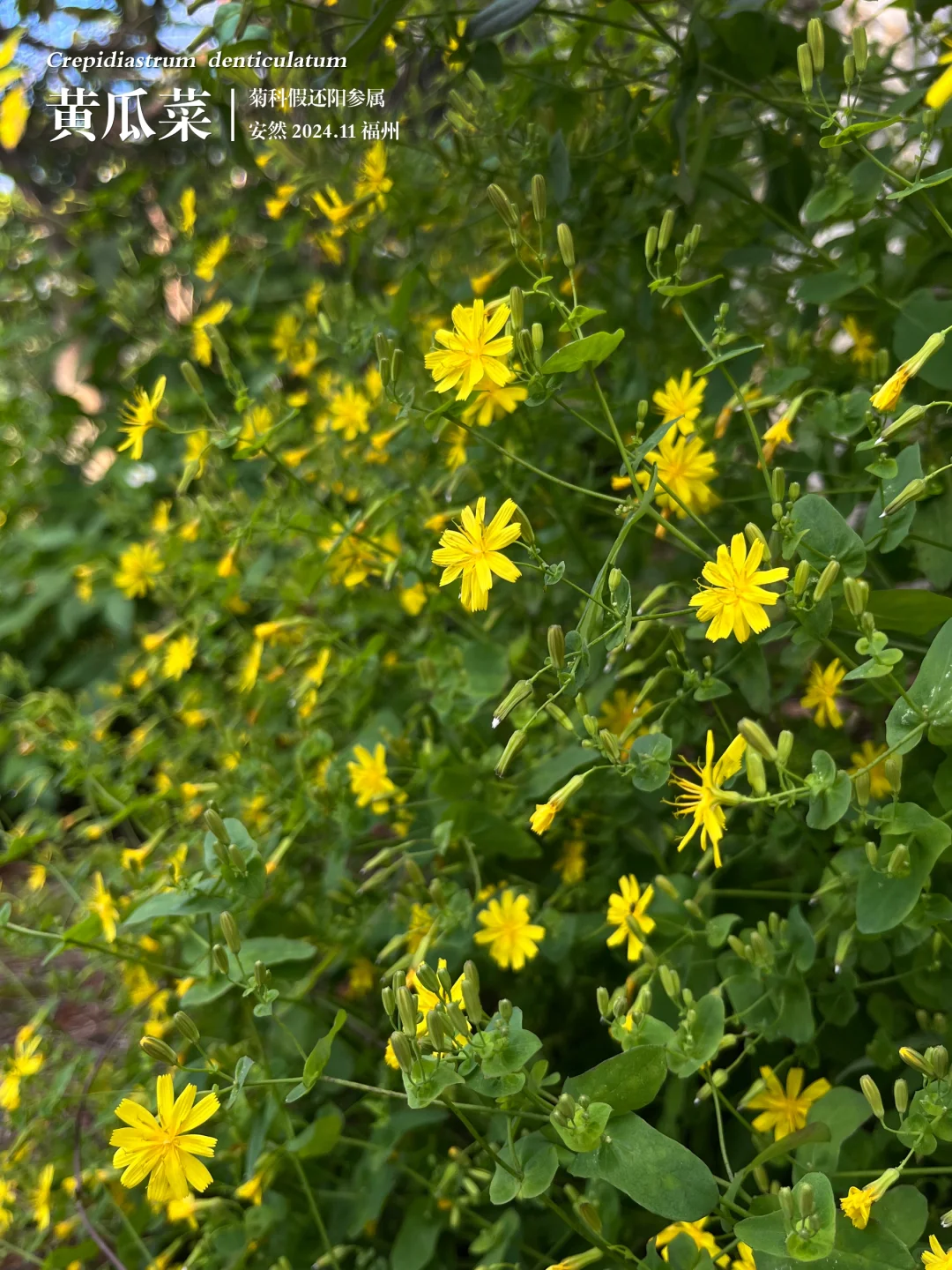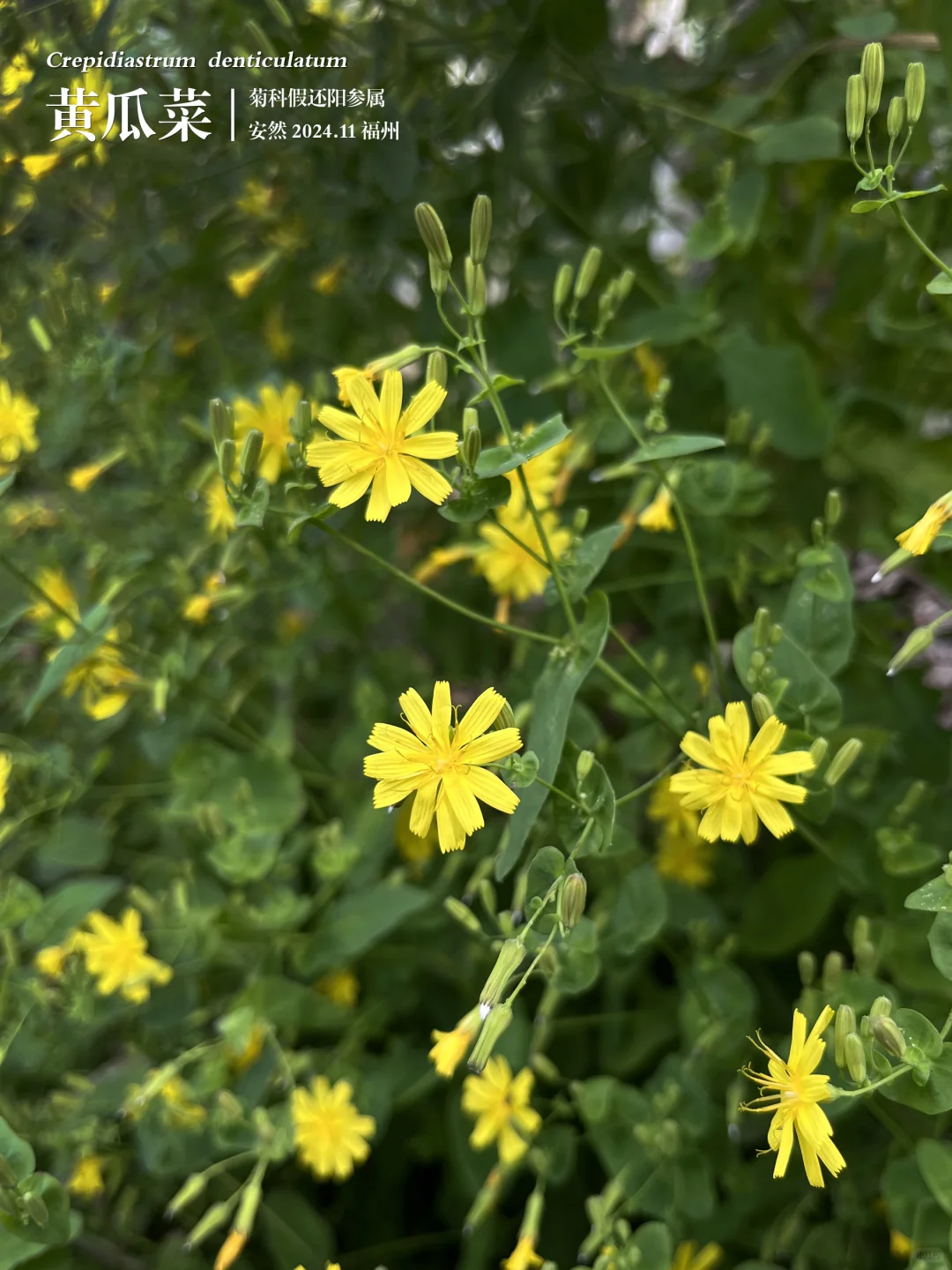 那天在鼓山十八景公园看到它,正处在盛花期。小花虽不大,仅1.2-1.8厘米,但胜在色彩鲜艳、花量繁多,叶片清新翠绿,整体醒目且颇有自然野趣。