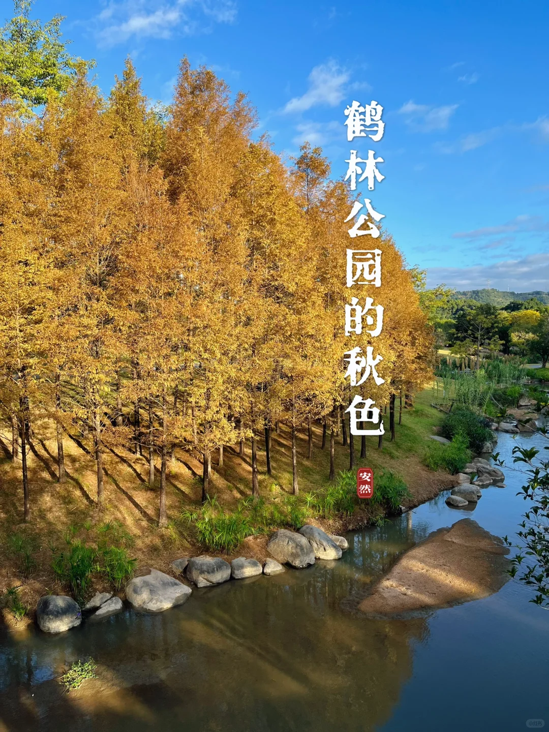 鹤林公园有着蜿蜒的溪涧、曲折的园路、起伏的地形,是一个幽静、生态的公园。 十一月的园中溪流,随着温度的降低,大片杉林逐渐变色,展现黄中带点滴焦糖色,阳光透过杉林,色彩更加鲜明。 抓住清晨转瞬即逝的阳光,拍下照片,记录公园的美好。 [向右R][向右R][向右R]公园简介: 【地点】晋安区鹤林生态公园(导航定位「潭桥鹤林路口公交站」从公交站向西直行至溪畔) 【交通】 1、地铁竹屿站,导航鹤林生态公园,步行约500米 2、公交车333号,潭桥鹤林路口公交站