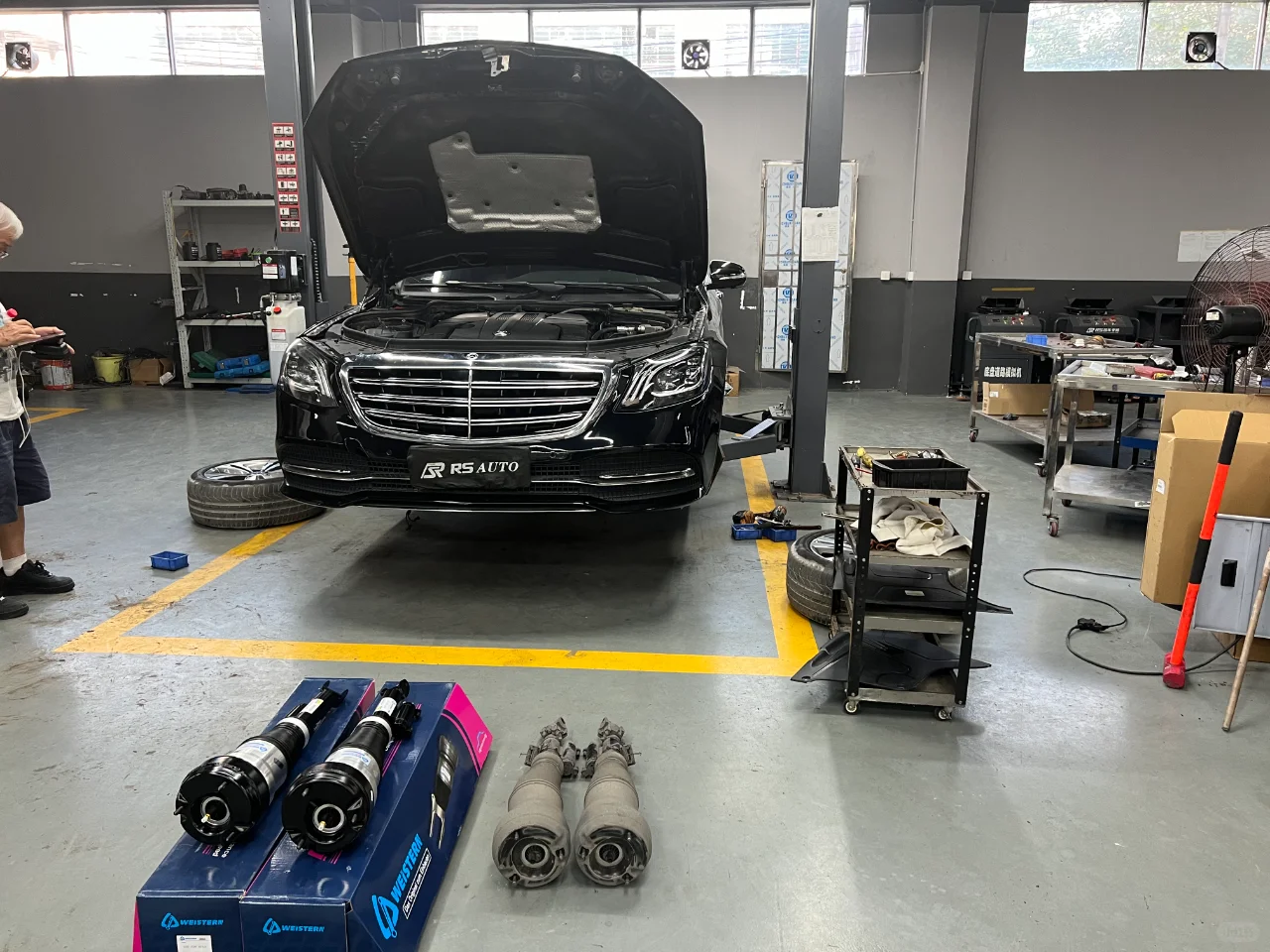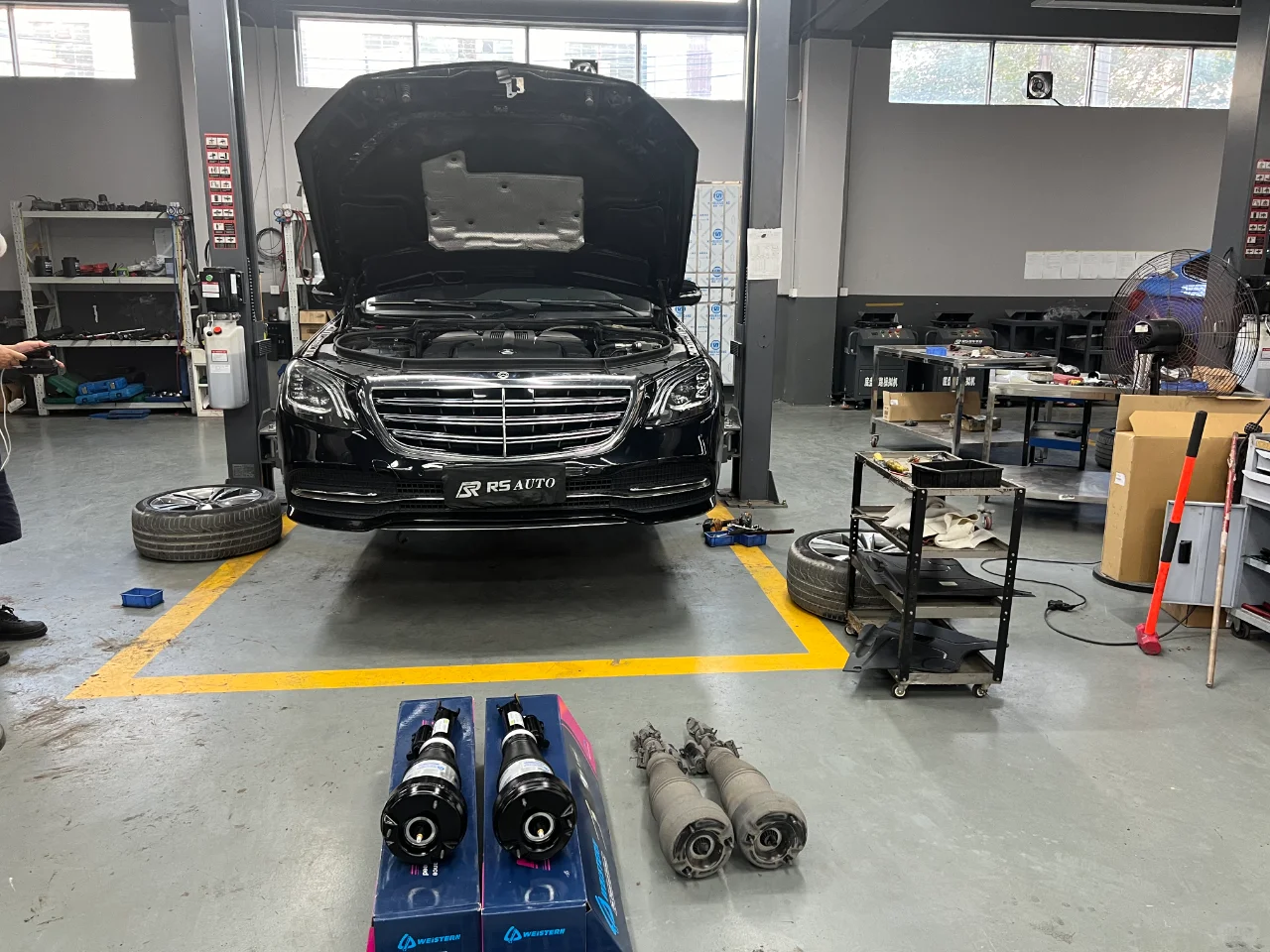 🚗这是一台15年奔驰S级。大哥反映车子过减速带、走烂路时,减震器又硬又跳,还伴有异响。这可是奔驰空气减震的通病!