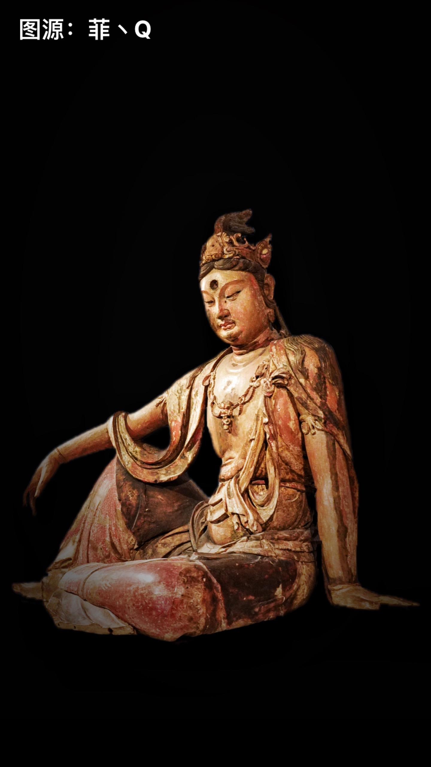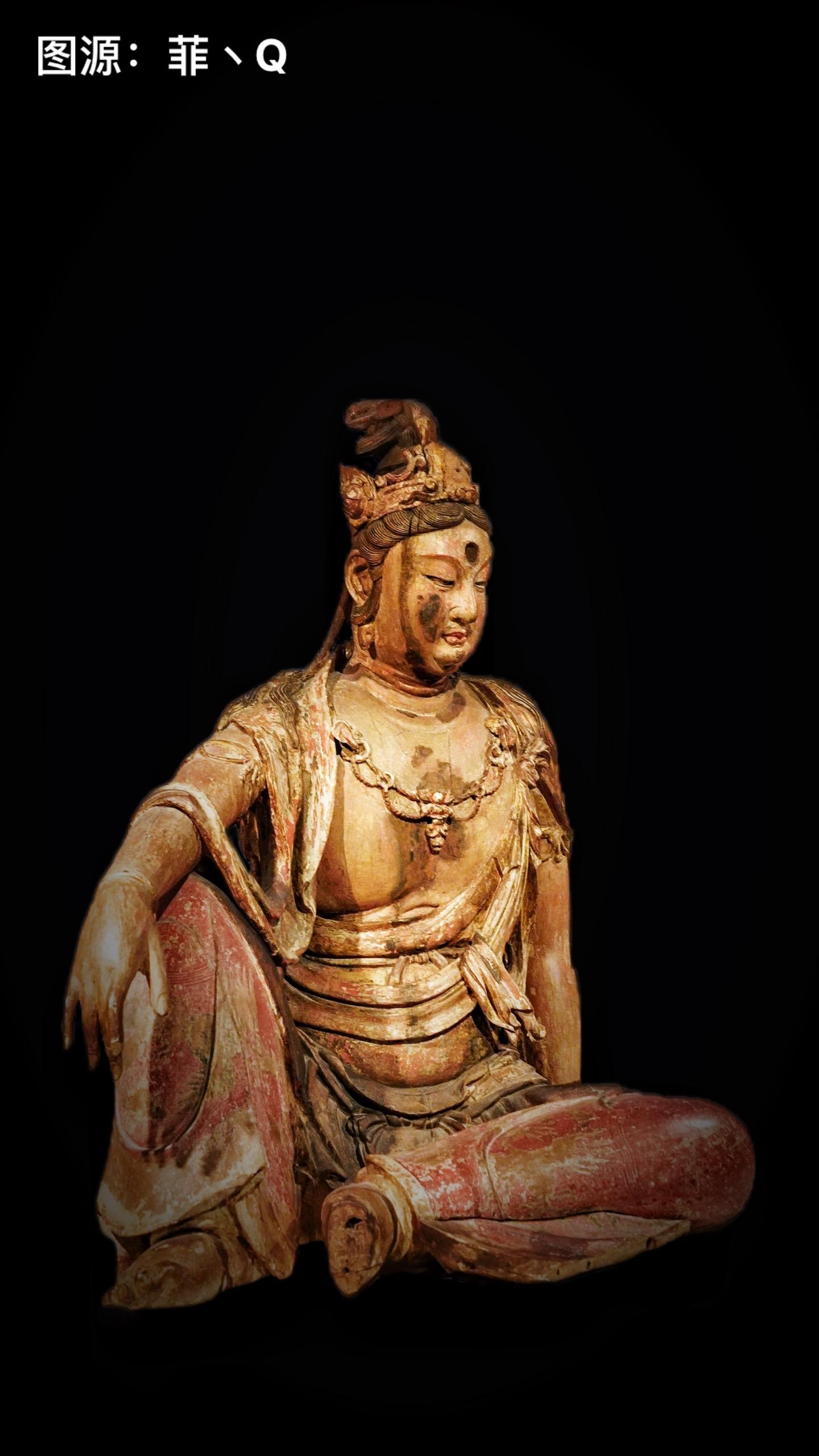 北宋/金·彩绘木雕观音菩萨像。诸天无实体,水月皆虚空——张大千