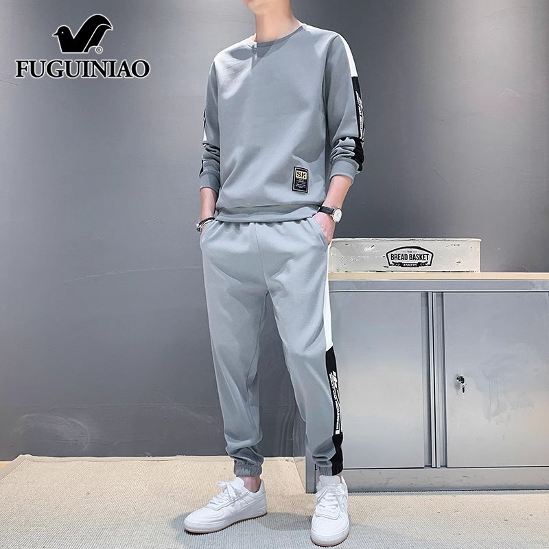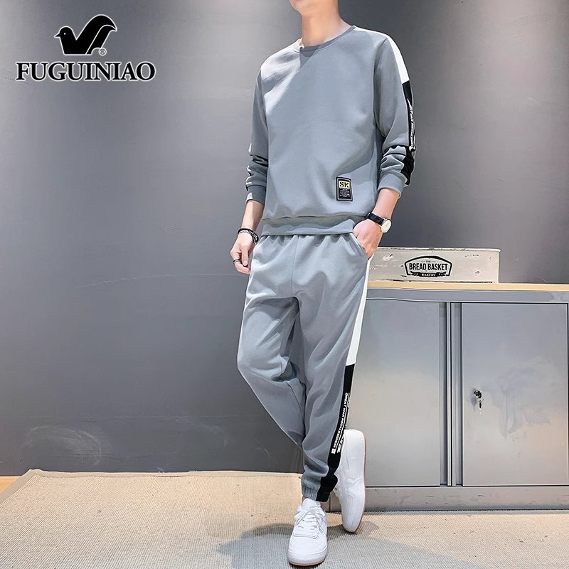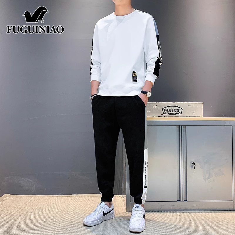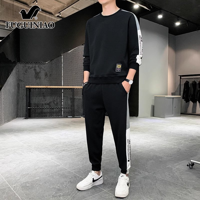 富贵鸟运动套装男士秋冬新款帅气休闲加绒卫衣长裤搭配一套男
