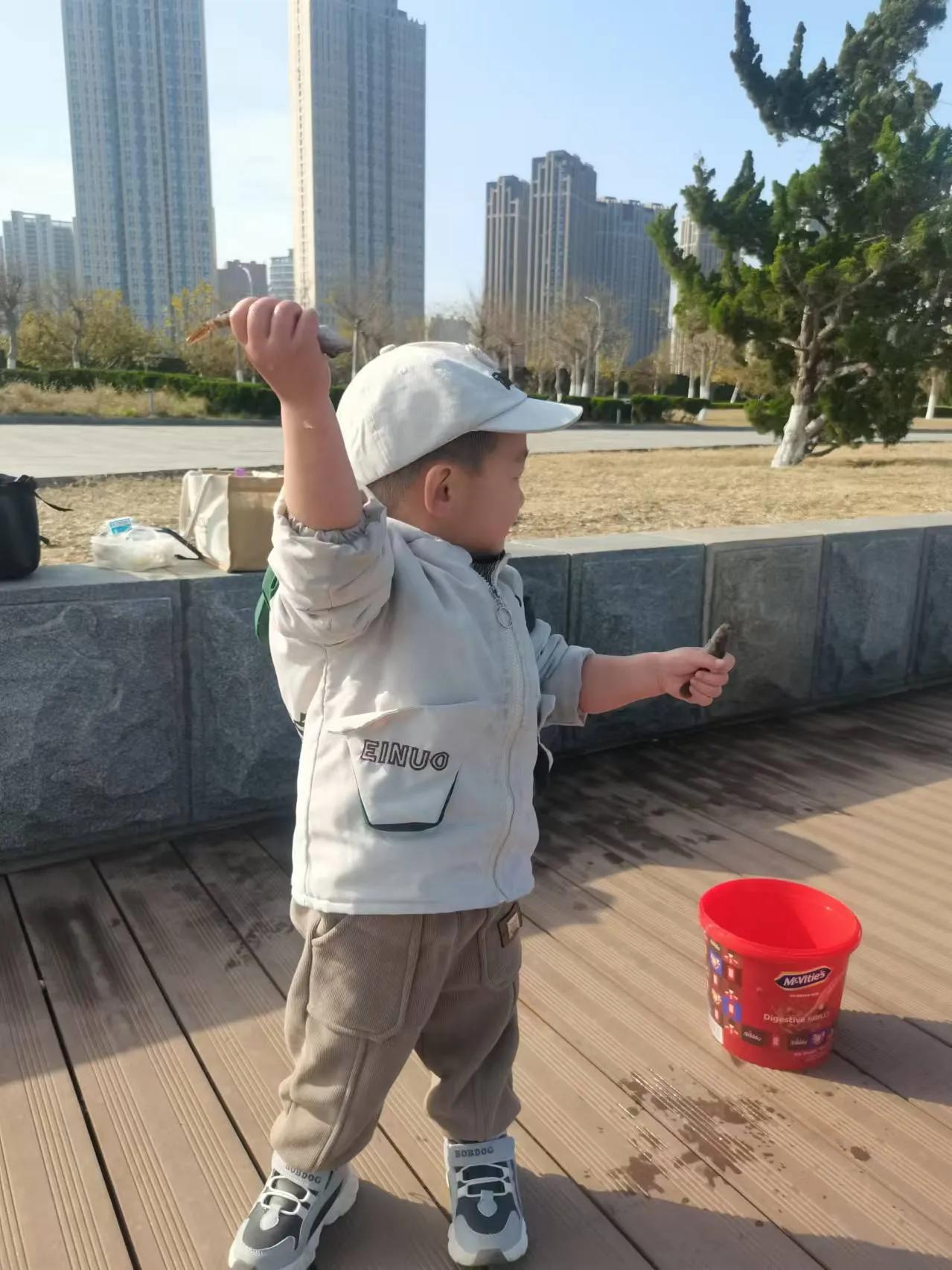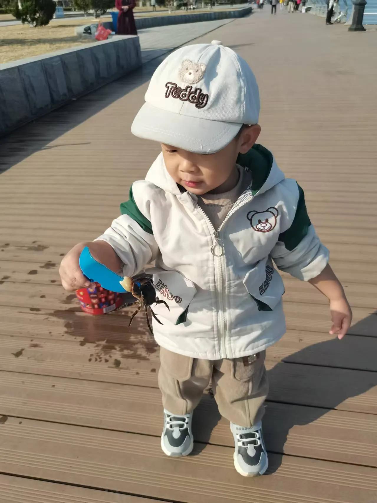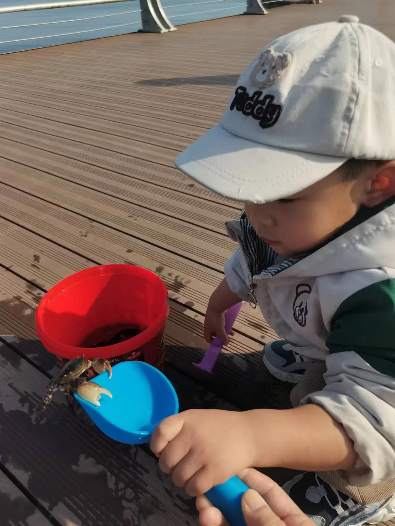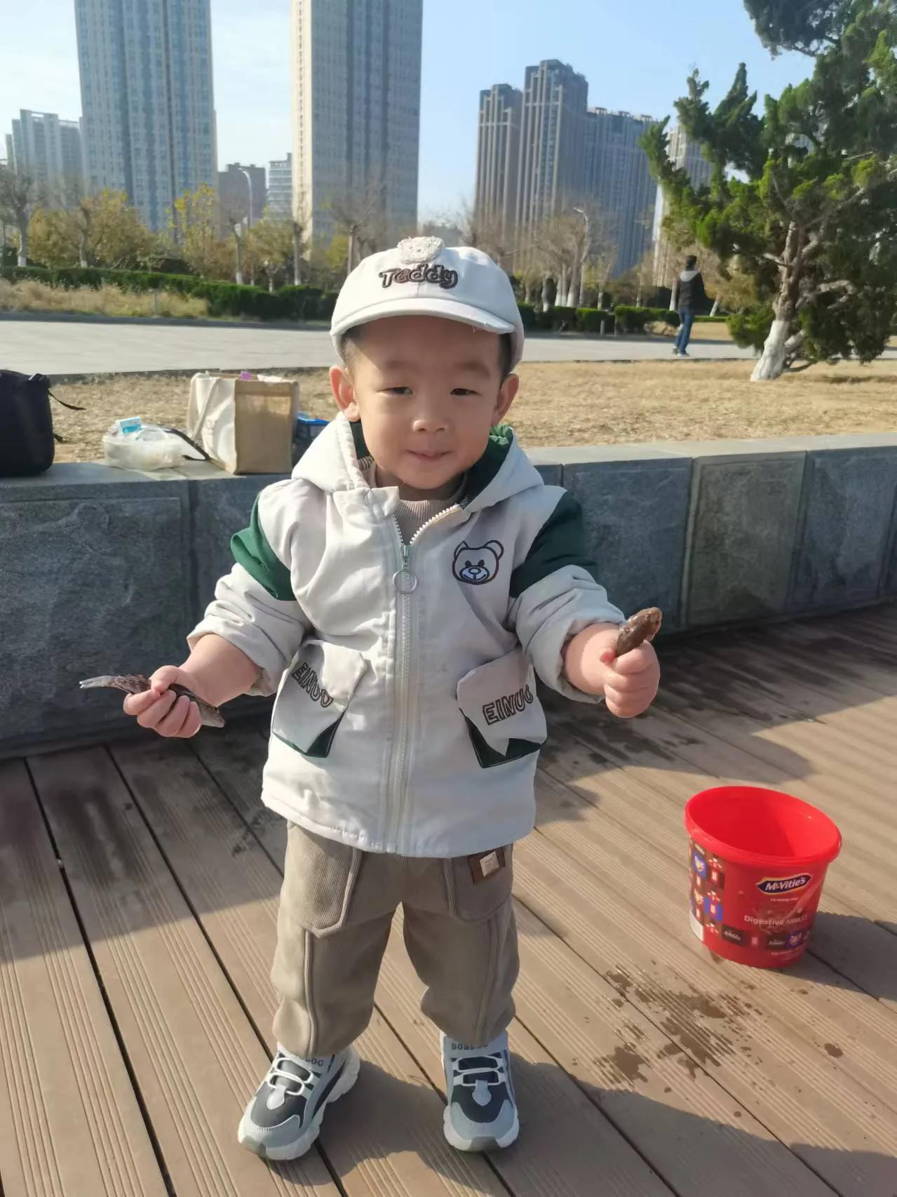 周日是个好天气, 带着大孙去钓鱼。 鱼获不是打紧事, 大孙高兴关键滴。