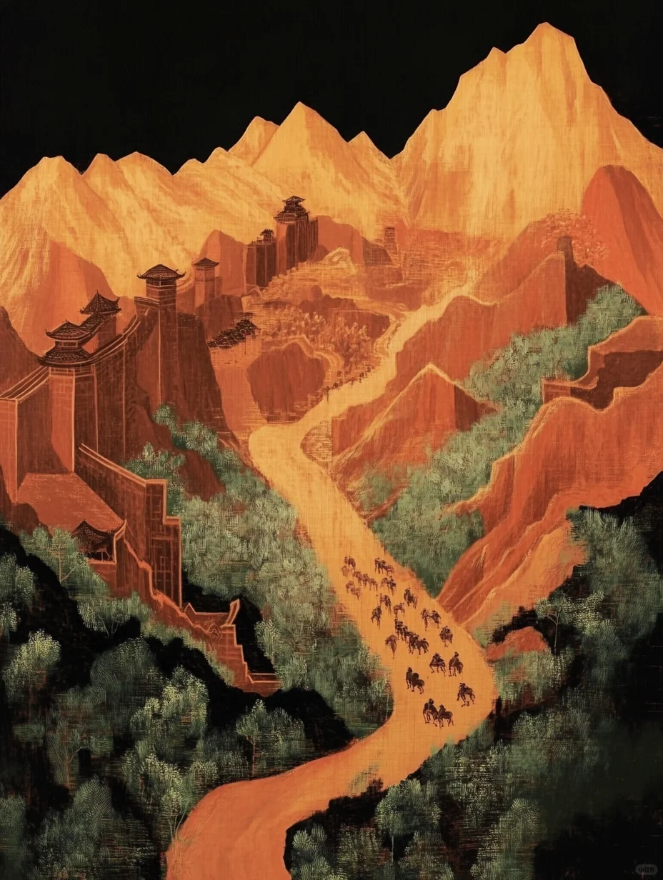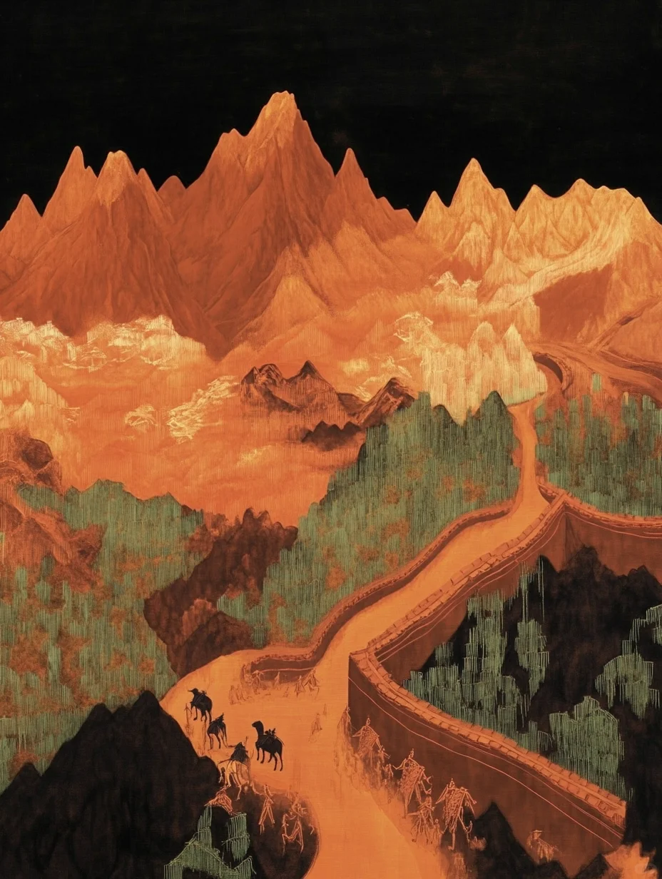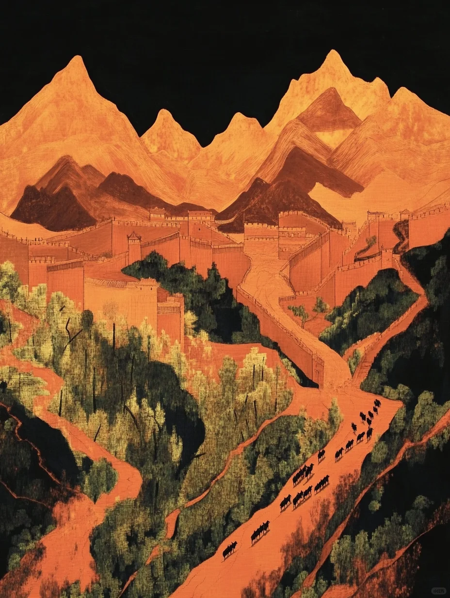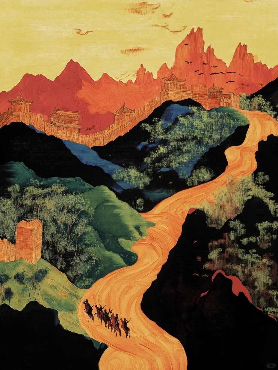 山河社稷图 插画 把诗词画在中华大地上 数字绘画 万山红遍层林尽染 城出日山峰 江山如此多娇 山门与幻境 每个人心中都有一座家山 新国风