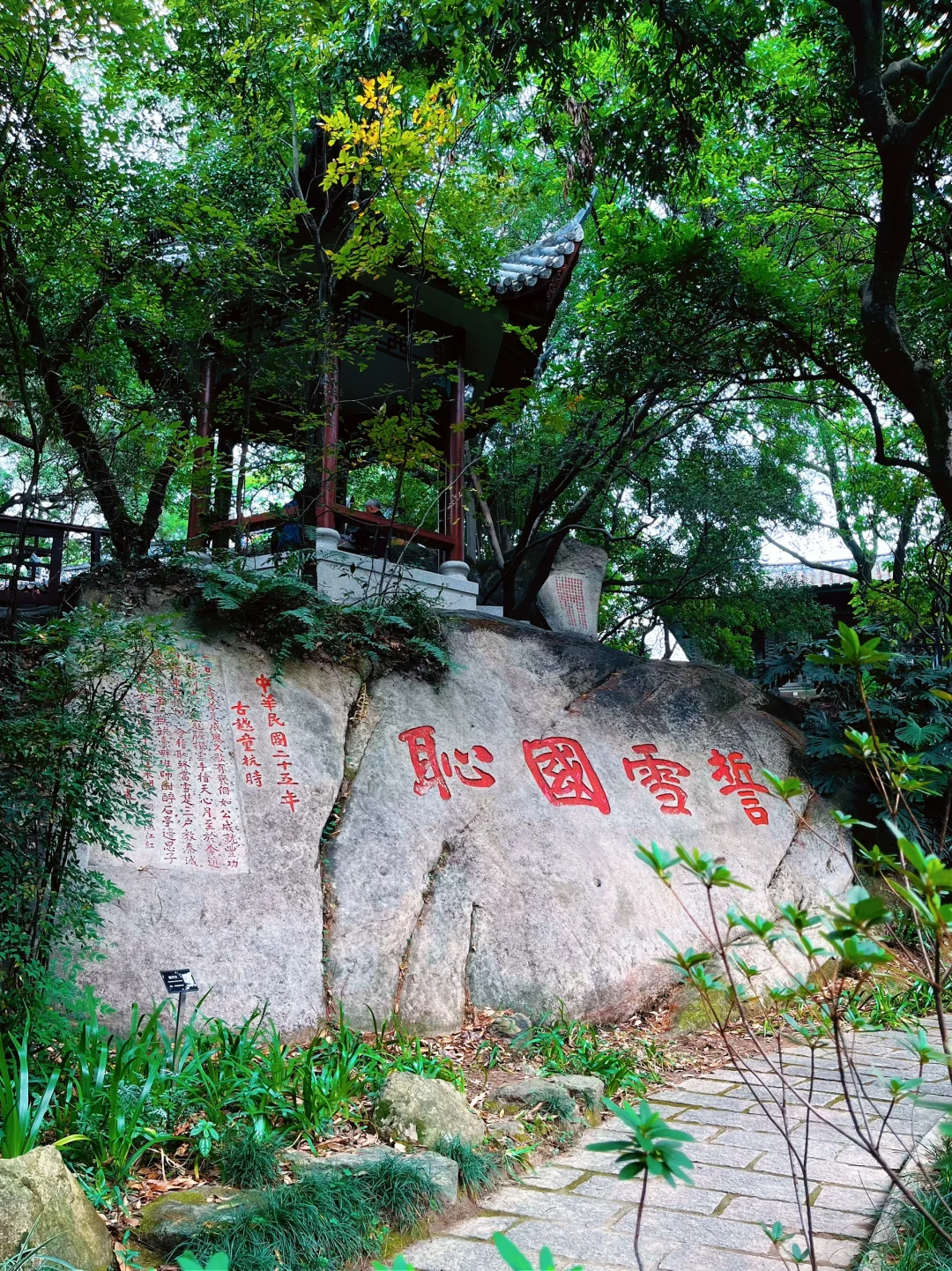 自清朝至今,历经兴衰。1933年十九路军将领为激励全国民众的抗日斗志,集资修缮,并增加了许多有关抗日内容的题刻。景区岗峦起伏,花木扶疏,曲径通幽,颇具园林雅韵。