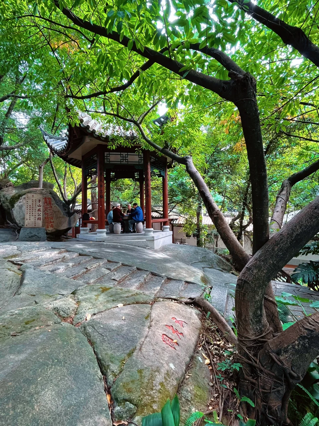 [四R]醉石亭:建于醉石旁,民国22年建,平面六角型单檐攒尖顶,混凝土结构。