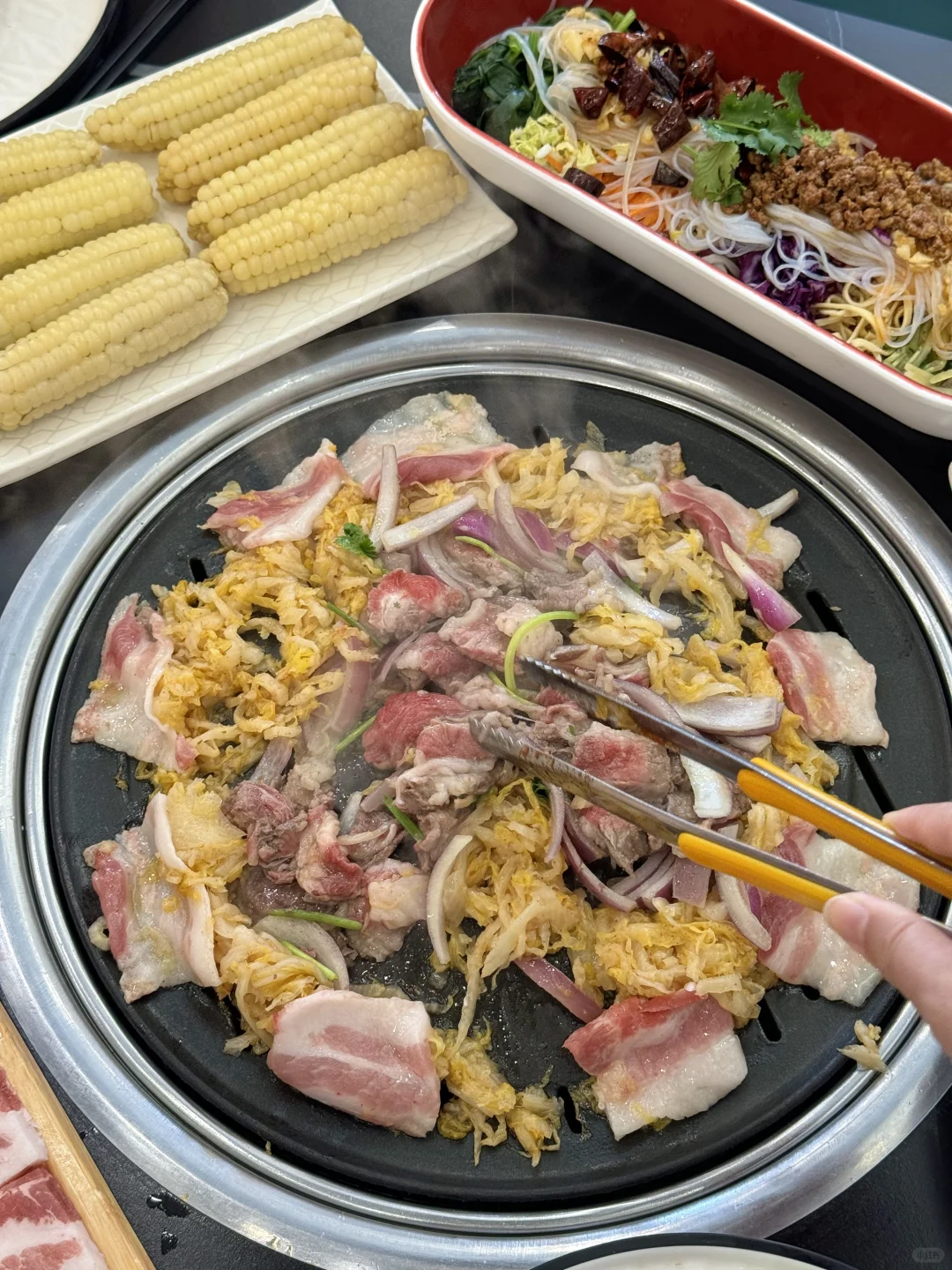 要说李村性价比👍的烤肉 还是得这儿 嘎嘎便宜 而且15多种小菜🥗随便加 是那种自取模式 酸菜+烤肉的搭配绝对不会出错 -