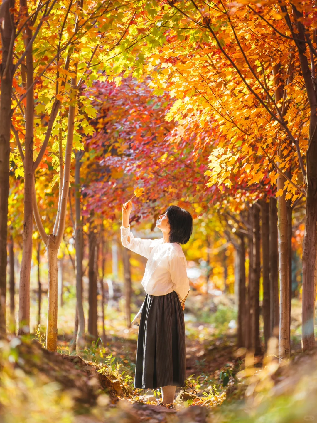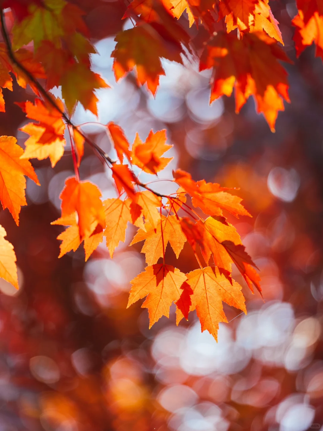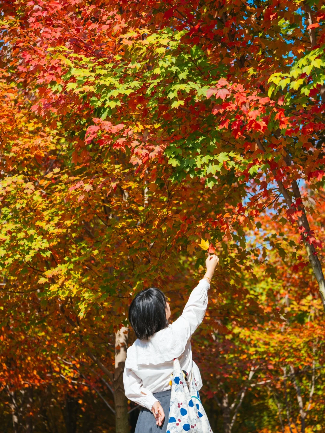 ✨ 不过,相较于全红时期的极致炽烈,此时的枫林别有一番油画韵味,青绿、金黄、橙红相间,阳光下的树叶透亮,层次斑斓。