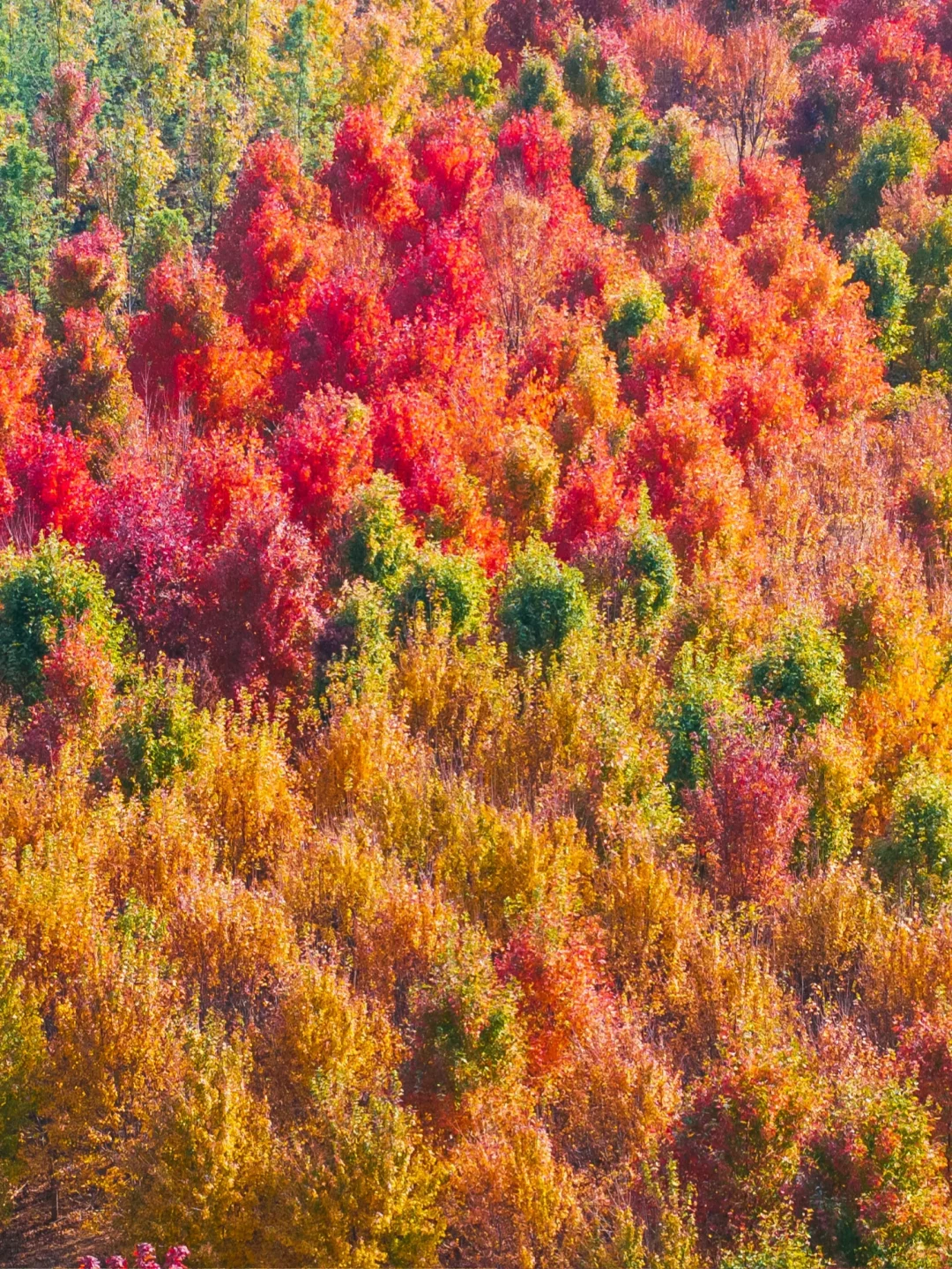 📷 航拍视角比较红,是因为树都是从树顶开始变色,好多树下面还绿着。