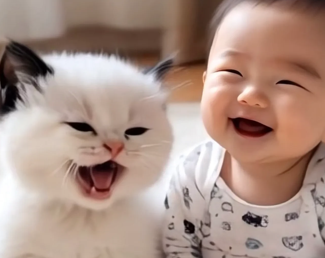 画面很温馨,让人瞬间被萌化
