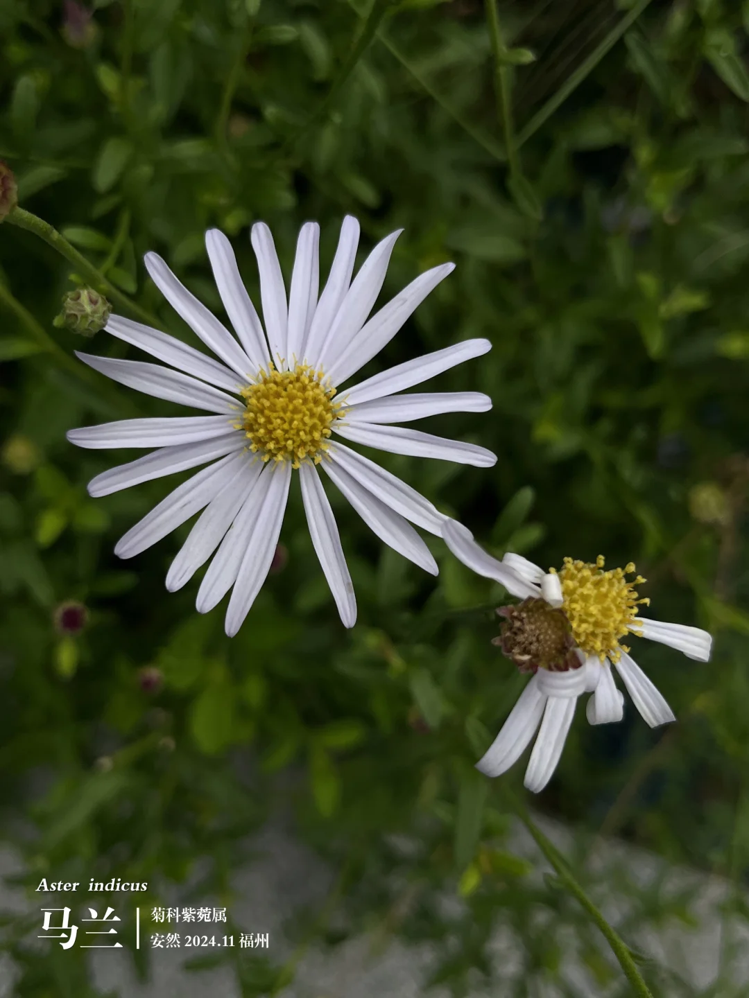这次记录了两种,感觉看到的是园艺种,因为比一般花大(一元硬币大小)。我在到底是马兰、紫菀、狗娃花中反复横跳。后根据花后总苞片的形态,辨别是马兰。
