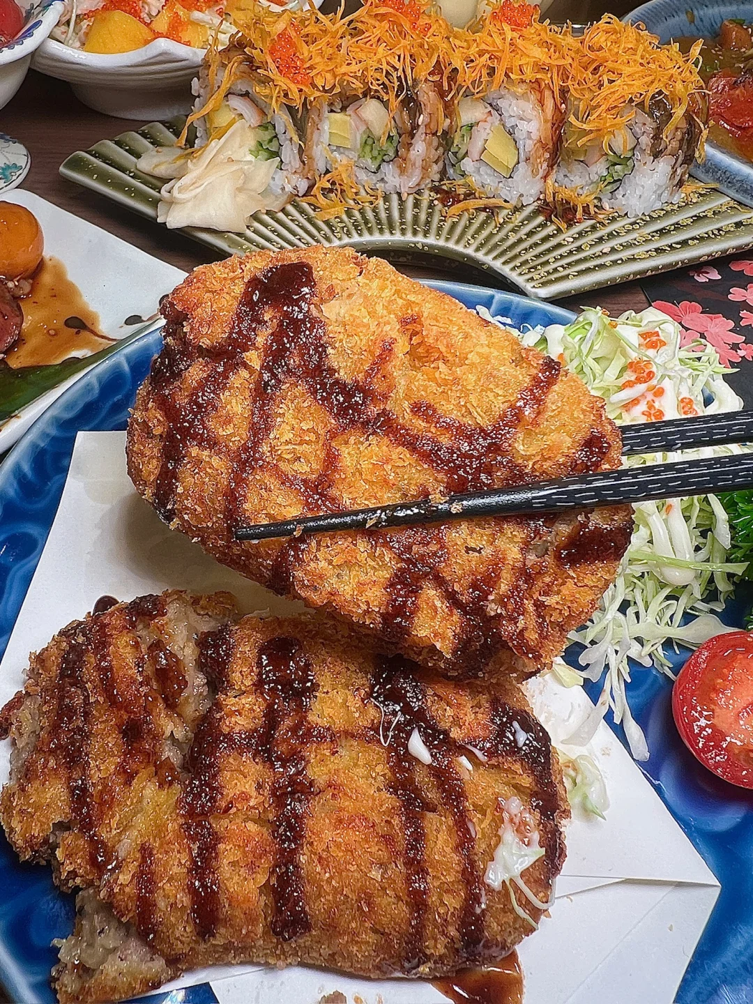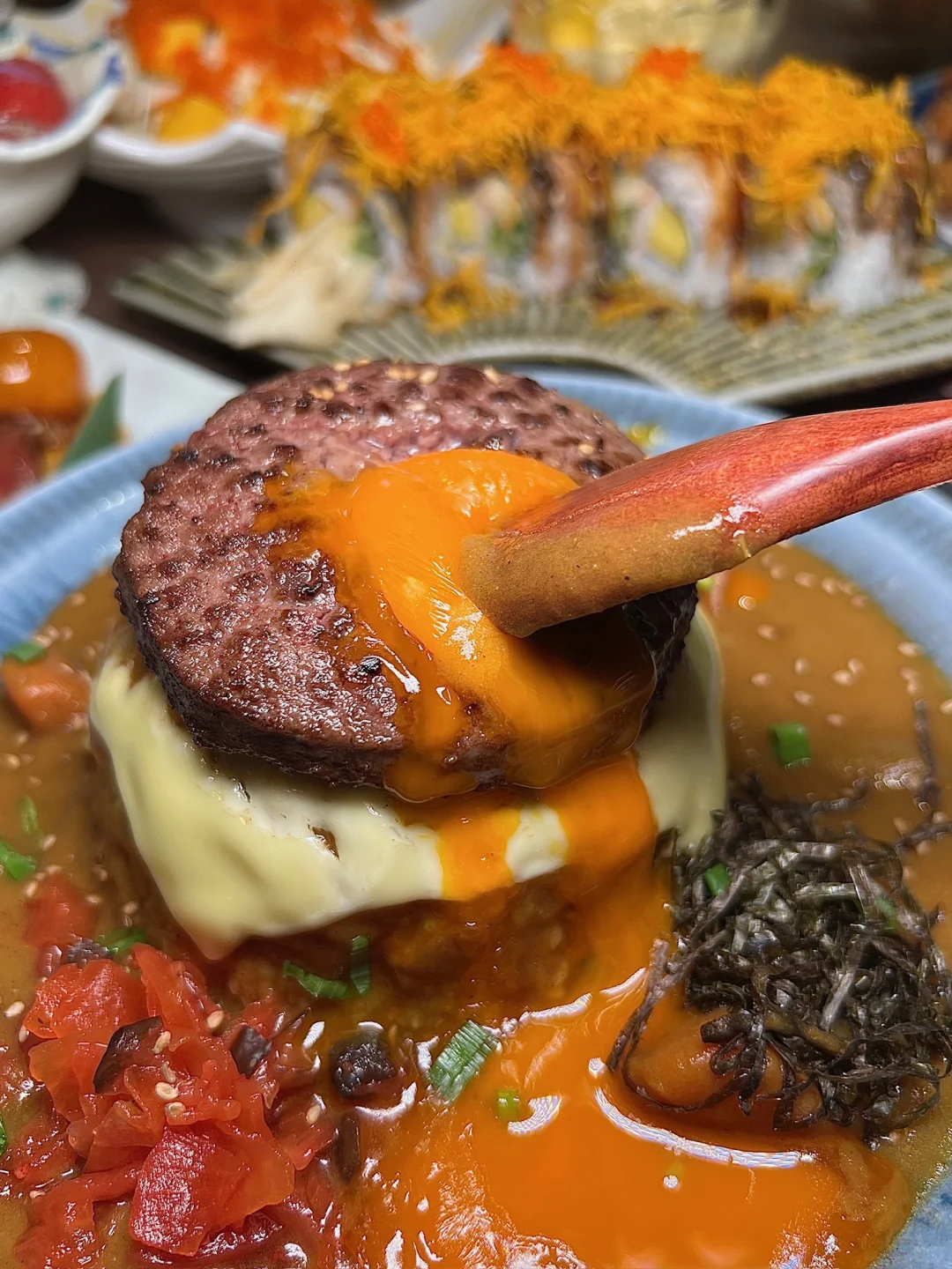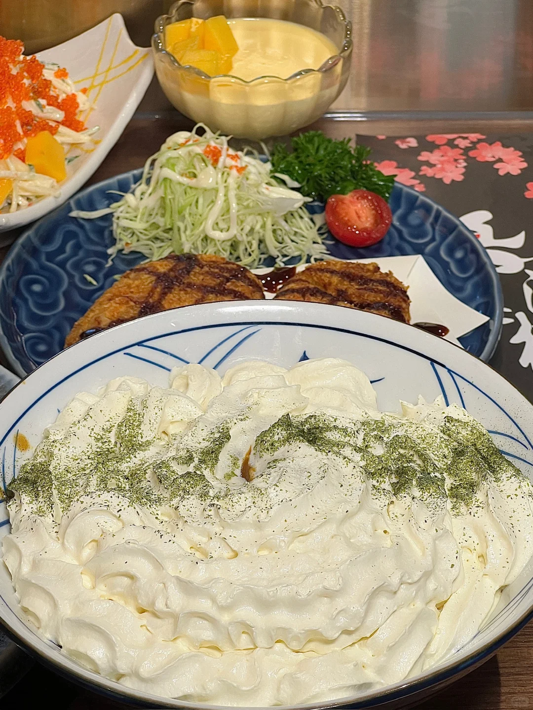 和牛汉堡咖喱饭🍛碳水脑袋和肉食星人都忍不住了!! 超厚实的牛肉饼➕无菌蛋➕咖喱饭 蛋液轻轻一戳就流心 牛肉汁饱满油脂香十足 拌在一起吃真的超级过瘾😭😭 是哪位天才发明的奶油咖喱乌冬面啊啊啊啊啊!! 奶香十足,顺滑细腻,面条很有韧劲这一口下去谁不迷糊啊?🤩 店里还有Yakitori烧鸟、寿司、手握...种类丰富的咧