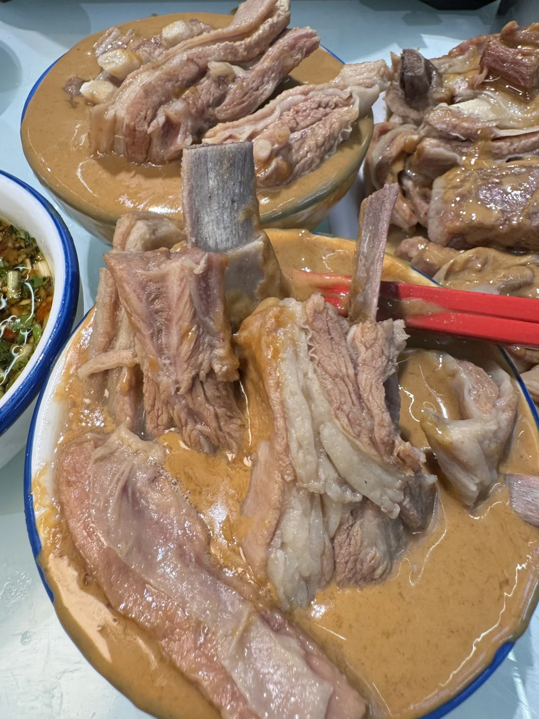 现点现蒸的干蒸排骨,提前腌制过非常入味,老板和店员都是广东人,口味很正。 感觉是南京最牛逼的羊排,都是新鲜的,每一块都肥瘦相间,一点也不膻,吃得出来品质很好。