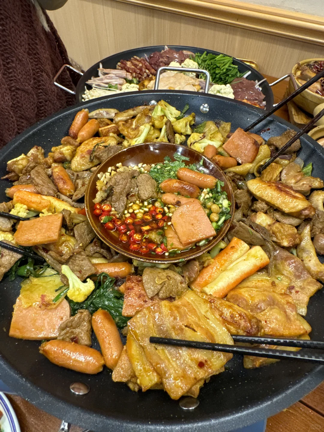 新开的贵州烙锅店,吃一次就爱住了🥢 烤牛肉、土豆、鸡翅、小香肠…油滋滋的,越烤越香! 而且贼便宜 人均才几十吃到撑。