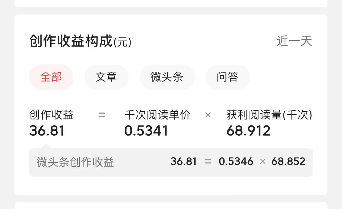 昨日微头条创作收益17.13, 千次阅读单价0.583, 尽管还是微不足道, 然比前天的千字阅读单价0.5346有所进步, 进步就好, 希望每天都有不断的进步! 今日微头条的收益不知道有没有一两块钱, 不管了, 写微头条不比写汽车征文, 想写就写,没有要求,随意写写, 能有收益就好,没有收益也没关系。