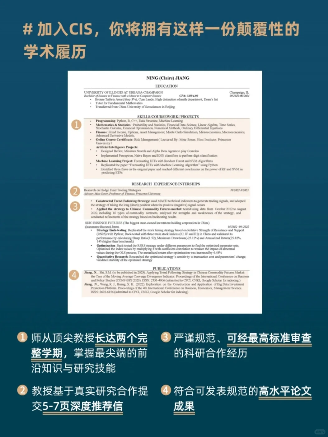 (1)师从顶尖教授长达两个完整学期,掌握最尖端的前沿知识与研究技能