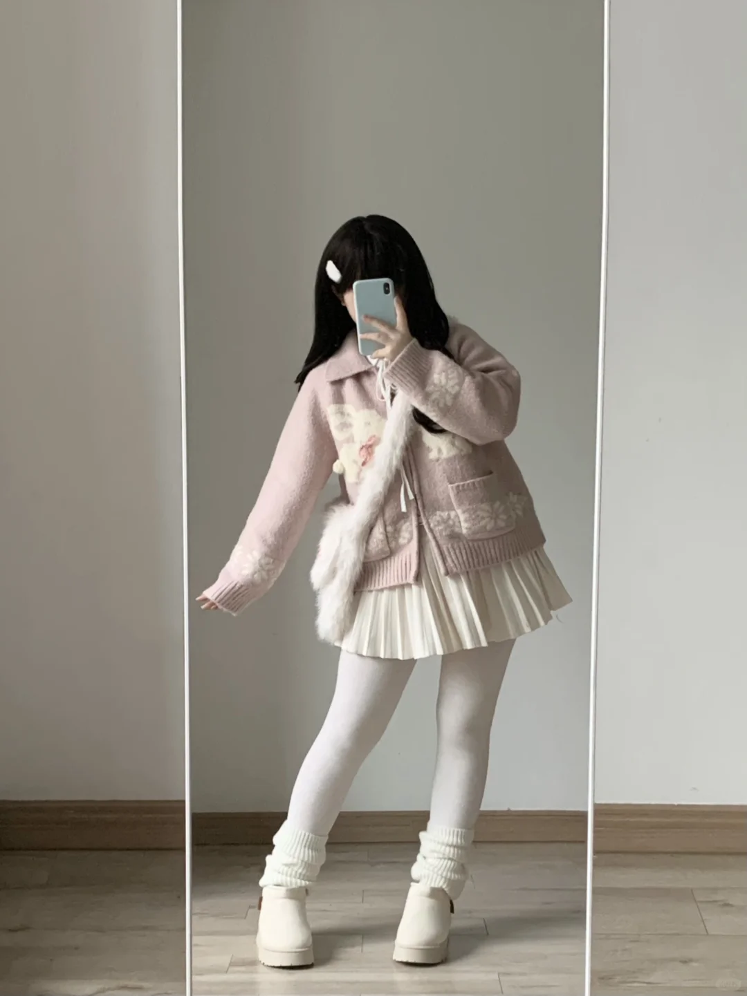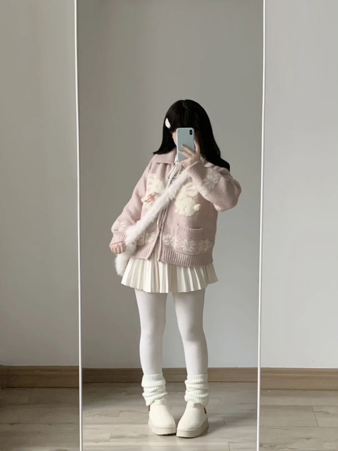 160120|微胖冬季不露腿穿搭🎀粉嫩小兔毛衣