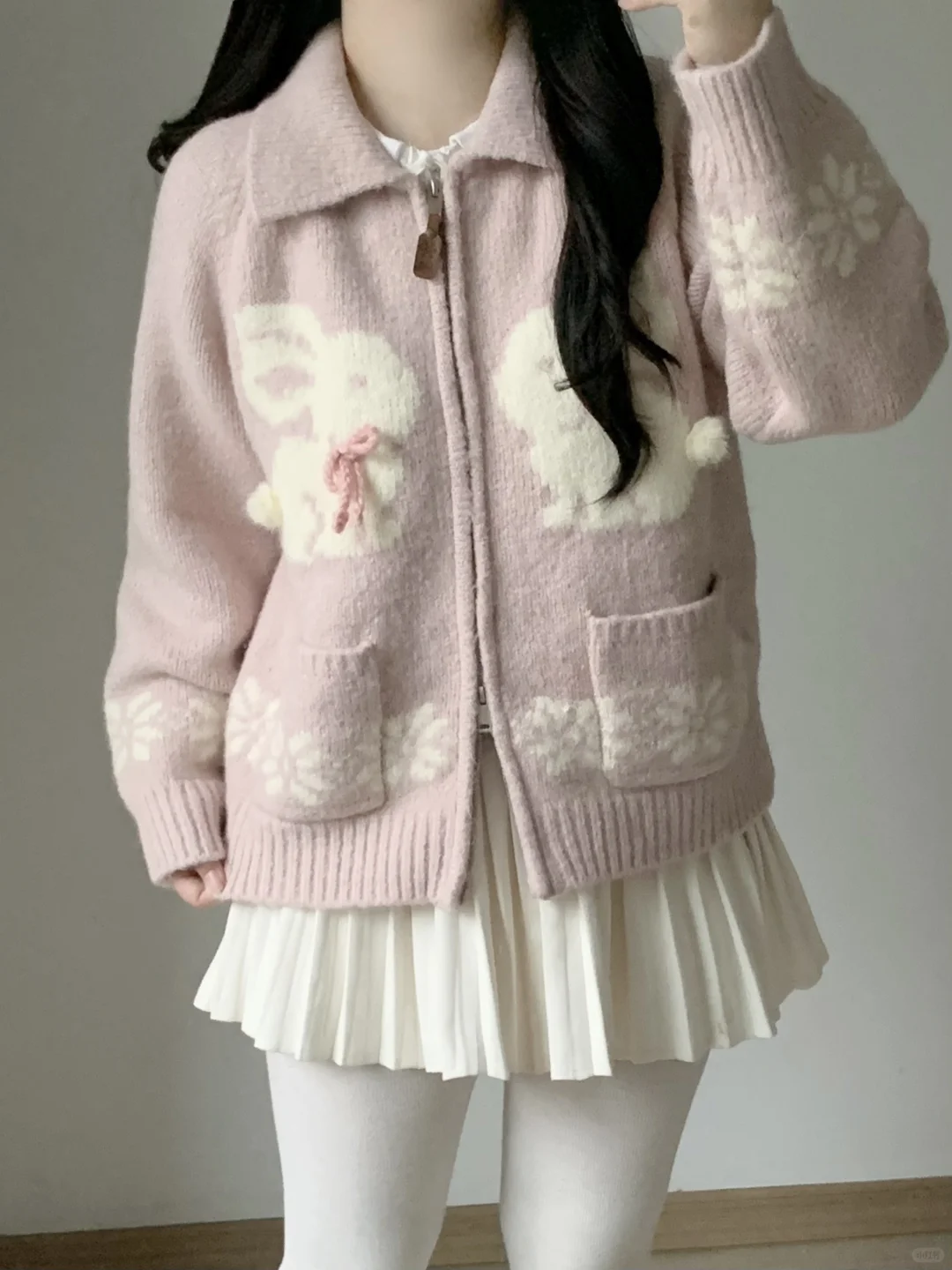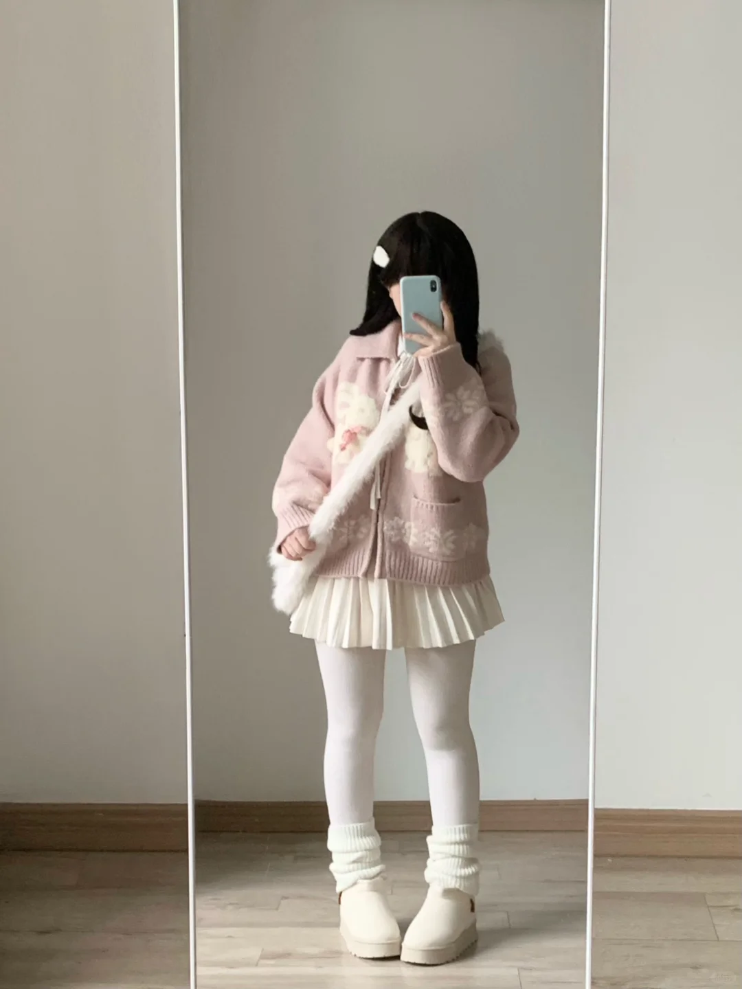 160 120|微胖冬季不露腿穿搭🎀粉嫩小兔毛衣