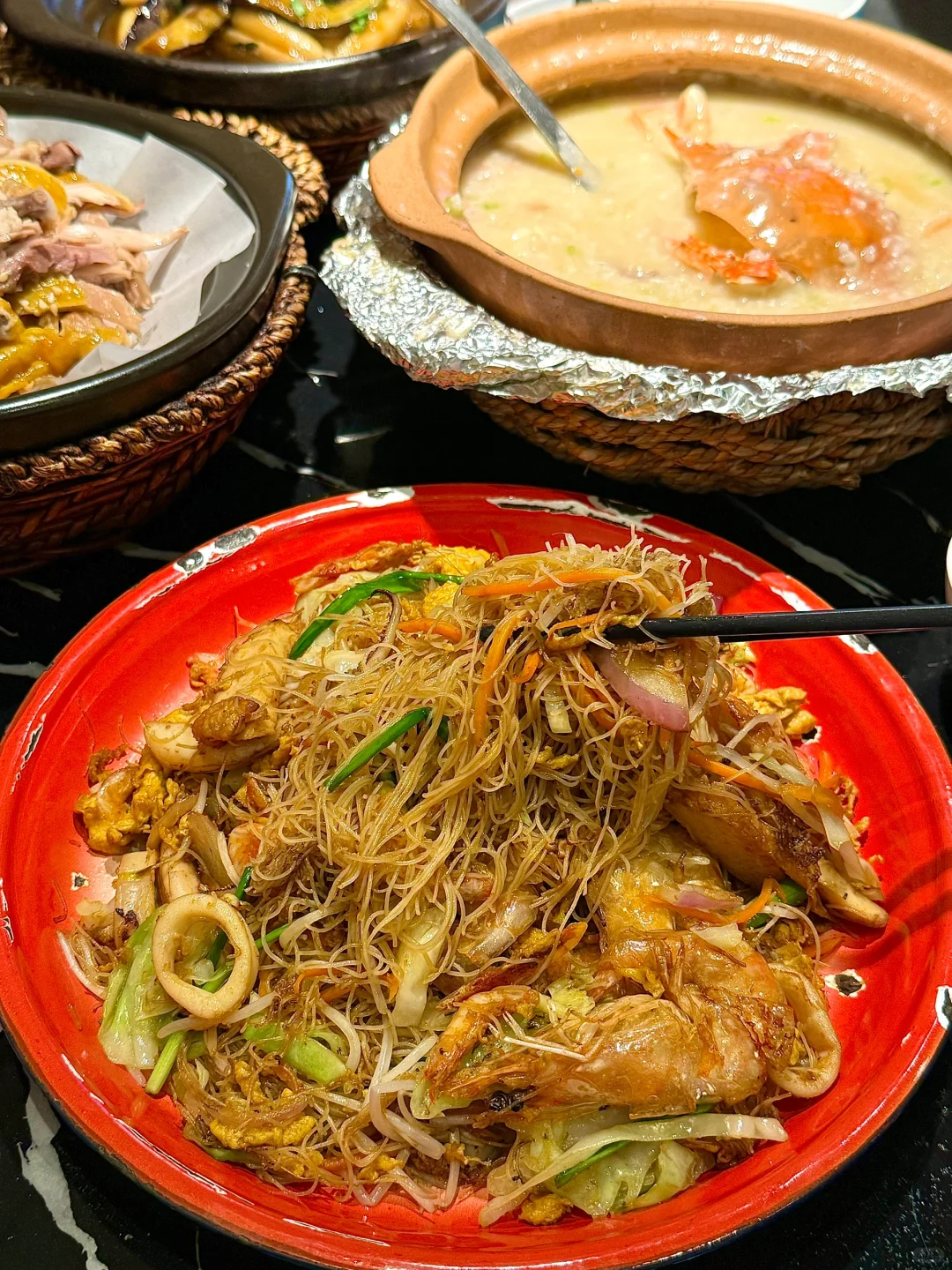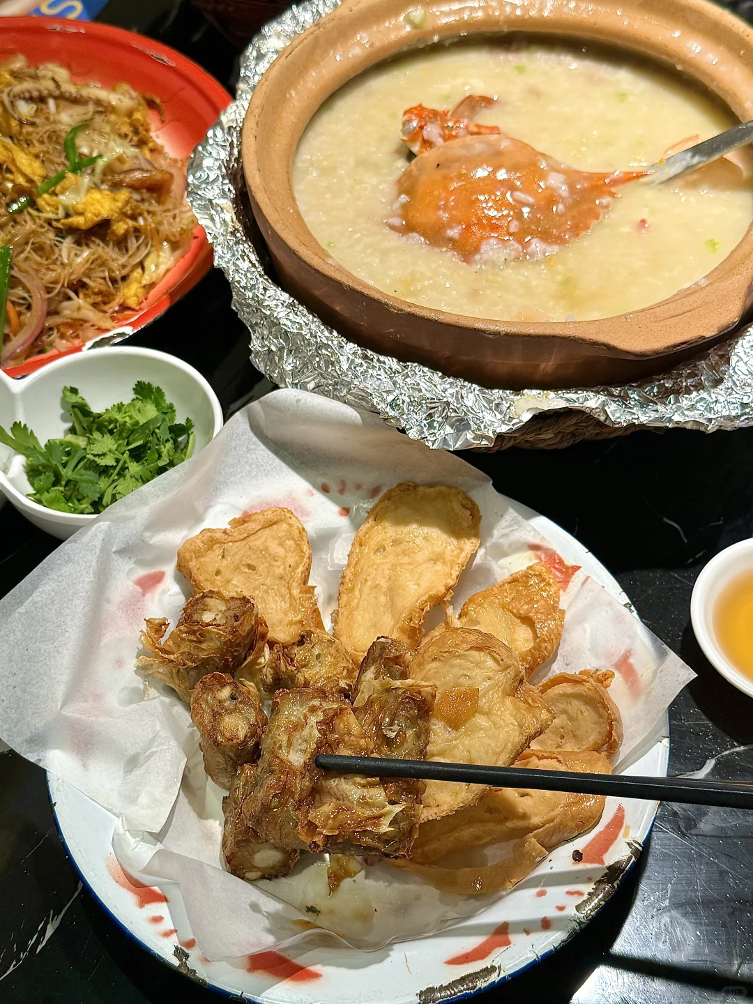 虾蟹🦞现抓 粥底现熬🍲 嘎嘎正宗的潮汕砂锅粥 潮汕小吃拼盘、南澳渔家炒粉干 还有很鲜的蚝仔烙🦪 吃完再打包一份奶黄包和煎饺带走🥟 好好吃🤤