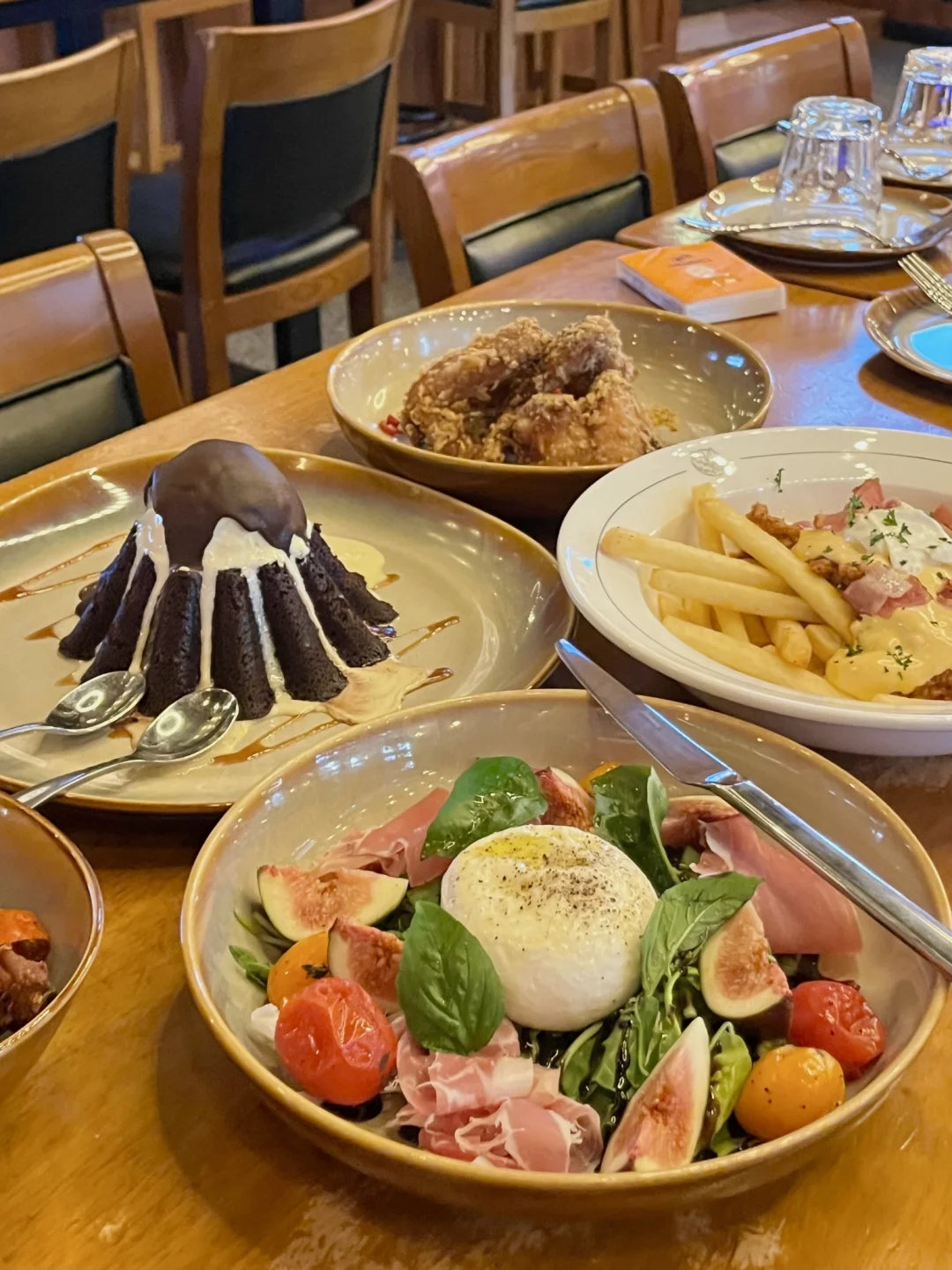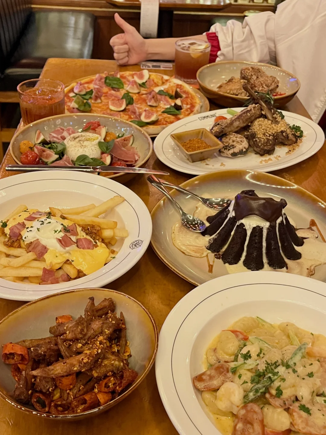 . 这家餐厅真的给我一种很舒服的感觉 从进门的一刻 内心感到舒适💗 真的很难不爱这种brunch 点了几道菜品 都挺好吃的~ 巧克力熔岩蛋糕也很绝😌 还有丑蘑菇黑松露披萨🍕 黑松露香气我真的爱了 这里还有小酒 可以和姐妹或者是男朋友来这里微醺✔️ 他们家对女孩子真的很友好 现在还有女士之夜 每周四晚上🌃 女孩子到店🆓喝指定款鸡尾酒~