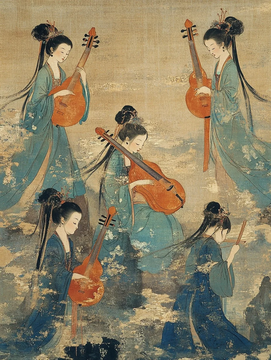 宋代美学 琴棋书画诗酒花 古风古韵 仕女图 国风插画 一张图证明古人的审美 穿越古画只为遇见你 乐器 音乐 中式美学