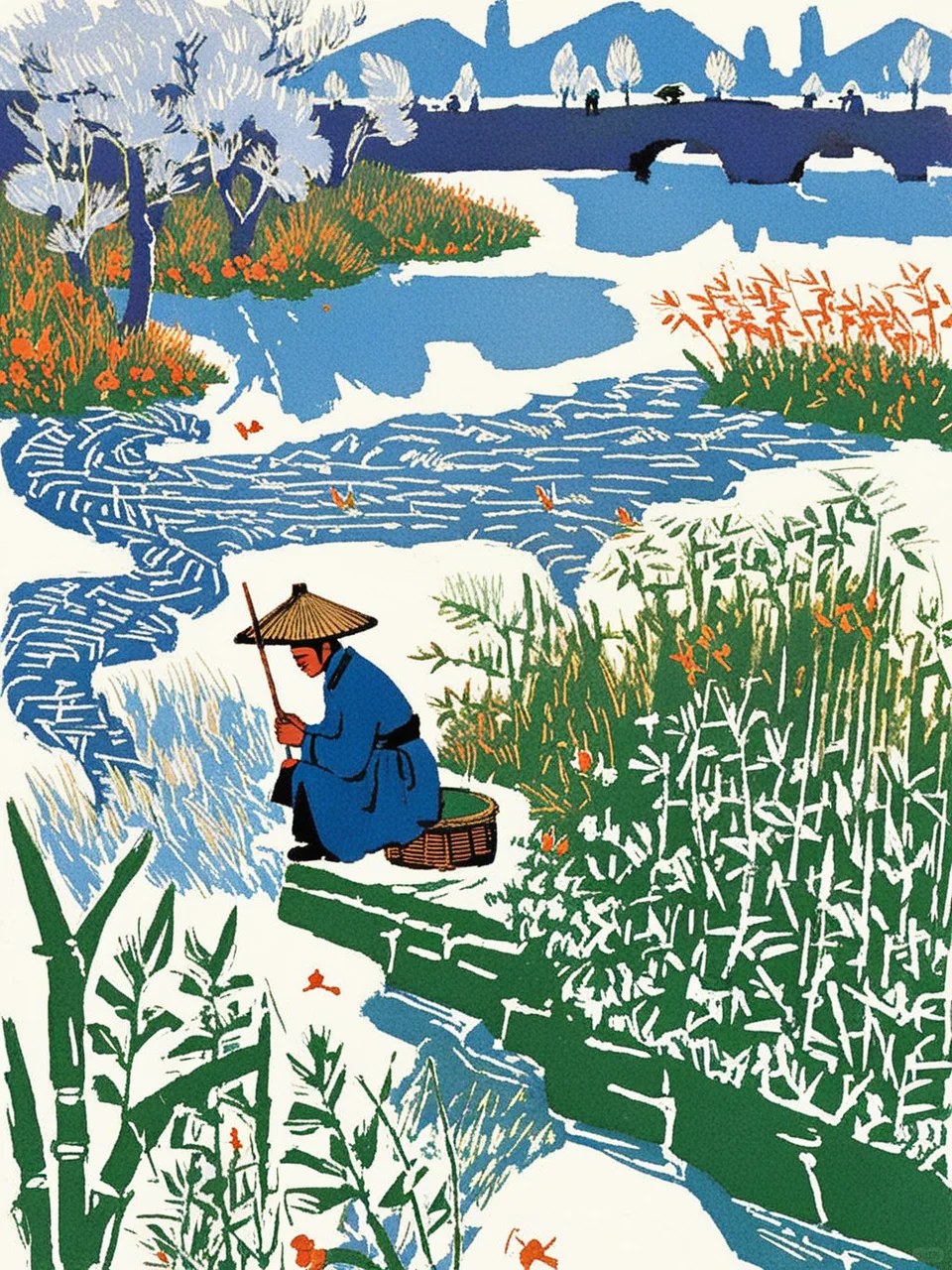 故乡的画卷 插画 每日插画分享 理想中的老年生活 用插画记录生活 平面插画 新国风 绘画 中式美学 版画