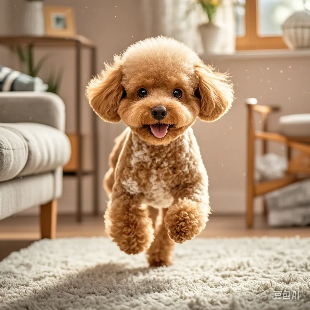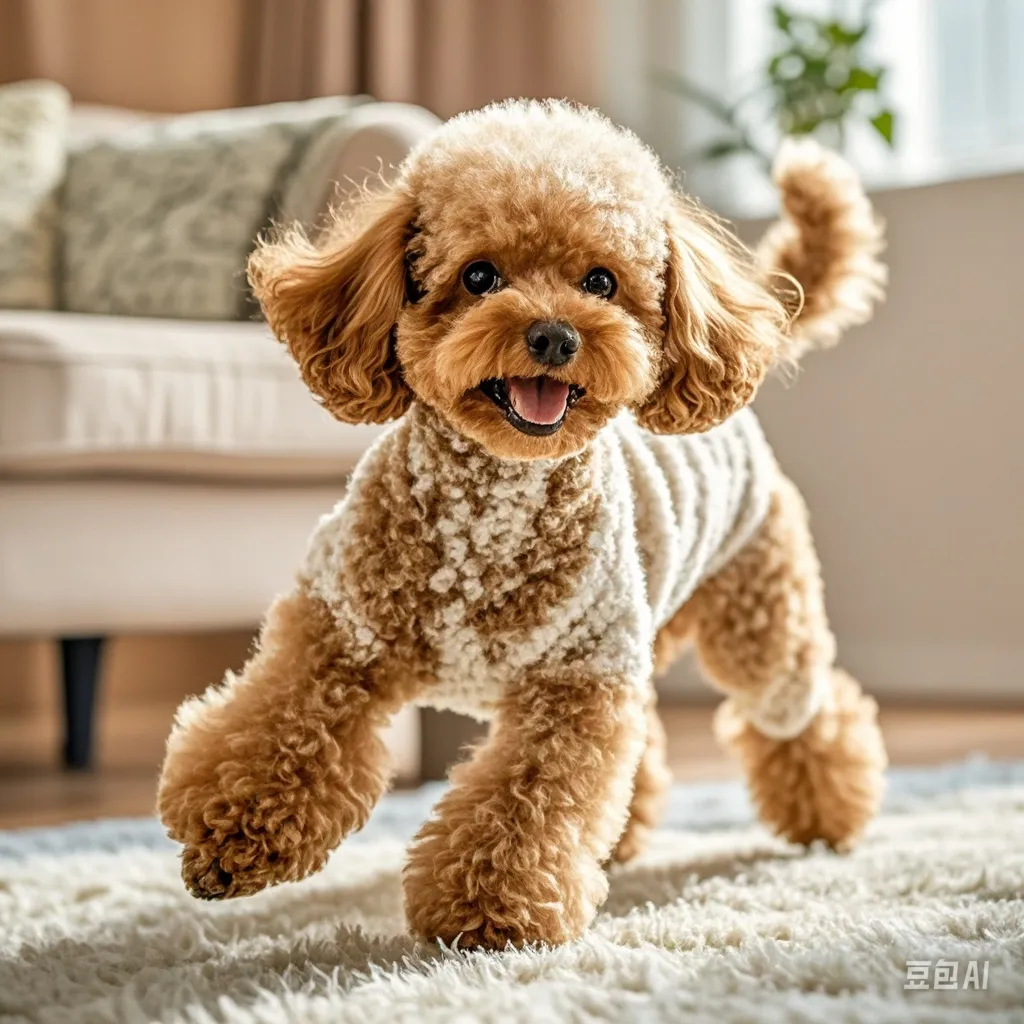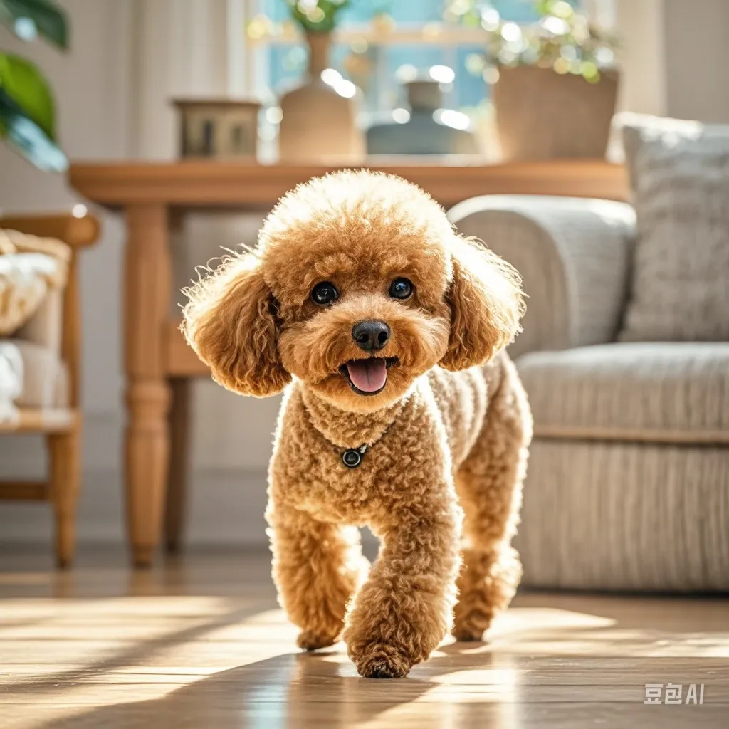 家里的小泰迪就像一个毛茸茸的小团子,欢快地蹦跶着。它一会儿把小脑袋钻进沙发底下,一会儿又叼着心爱的玩具球在客厅里跑来跑去,那小爪子在地板上踏出轻快的节奏,仿佛整个家都是它的游乐场,每一个角落都充满了它的快乐气息