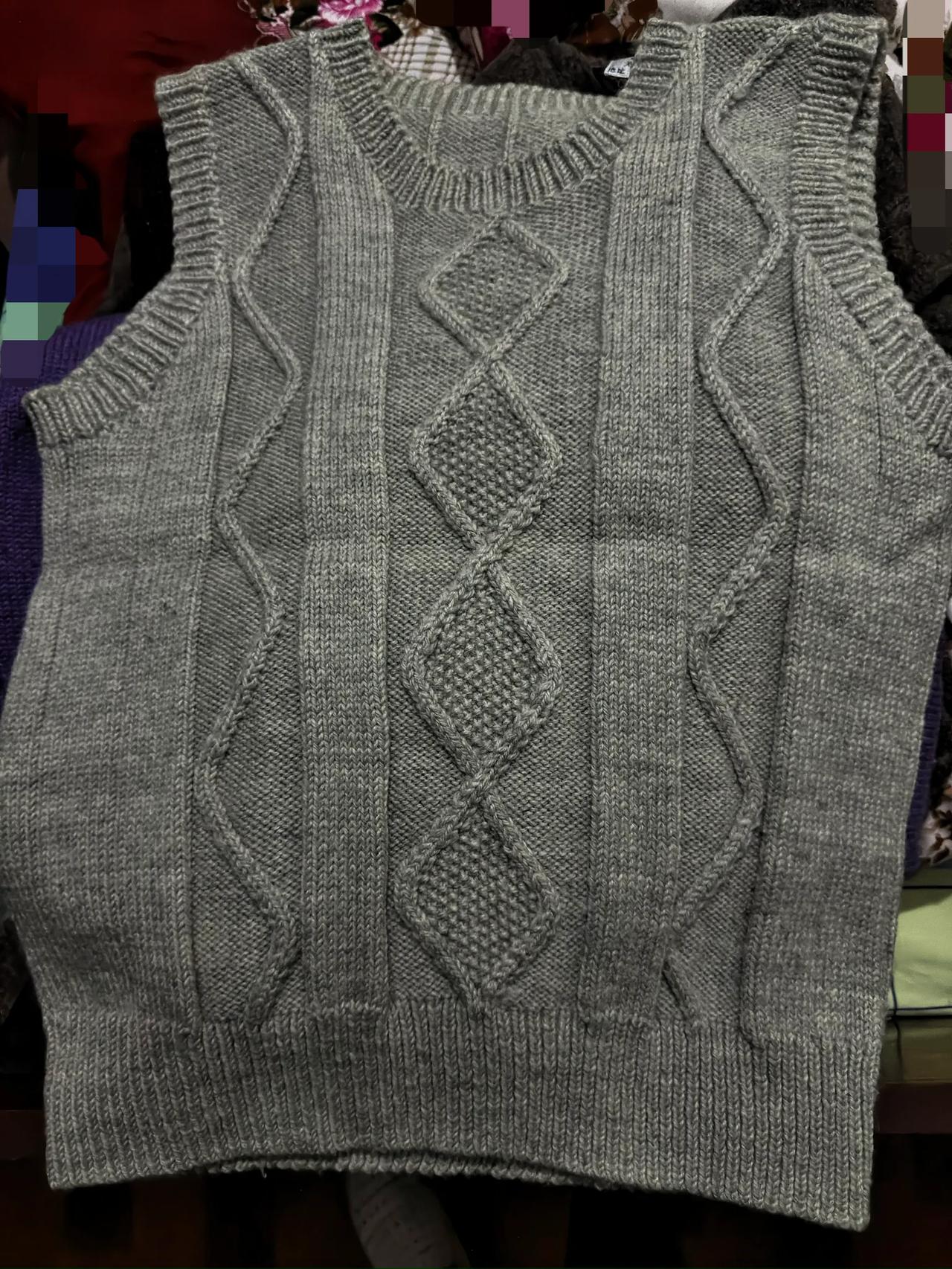 图一这款手工编织的开襟毛衫吸引到我了!要在10年前,我一看到就敢脱口而出:我也能打出来! 图三就是我多年前给母亲编织的毛背心,自我感觉也很漂亮呢,我母亲都舍不得穿,这是我前几天从母亲的衣柜里翻出来的,还是崭新的。 已经有十几年没有编织过毛衣了,即使有图样针法图解说明,也不敢轻易说自己一定能编织出来了,因为手生了! 想当年,工作之余,业余时间,没有手机玩,就把手工编织毛衣当成了业余爱好,给自己编织毛衣,给家人编织毛衣,长长短短,各式各样,一件毛衣刚打好,稍有不如意,就整件拆了重新编织,那时精力真充沛,争分夺秒打毛衣,夜以继日打毛衣,打一件毛衣最短用时三天三夜,一般的用时一个月时间,现在打一件毛衣,恐怕一年都打不好了!所以说,不管什么技术,同样都有熟能生巧的道理!
