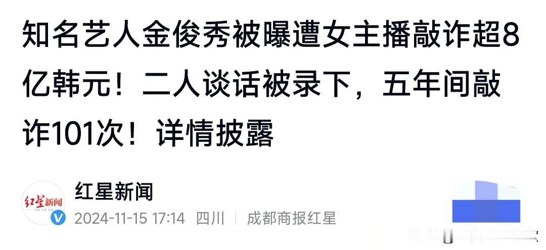 大瓜,11月15日,金俊秀被曝遭女主播敲诈超8亿韩元,8亿韩元,听上去感觉非常多,大约相当于人民币400万,也是非常的多了。 金俊秀曾是韩国超人气组合东方神起成员之一,会词曲创作,真的很有才华,颜值也高。 他们两人是2019年认识的,没想到女主播录下了二人的录音,2020年9月至2024年10月以录音为威胁,向金俊秀敲诈101次,敲诈了101次,这真的是太可怕了。 为何女子会如此疯狂?有报道称是为了购买毒品。 所以说一定要远离毒品。 金俊秀方面回应称他是受害者,目前仍在进一步调查中。