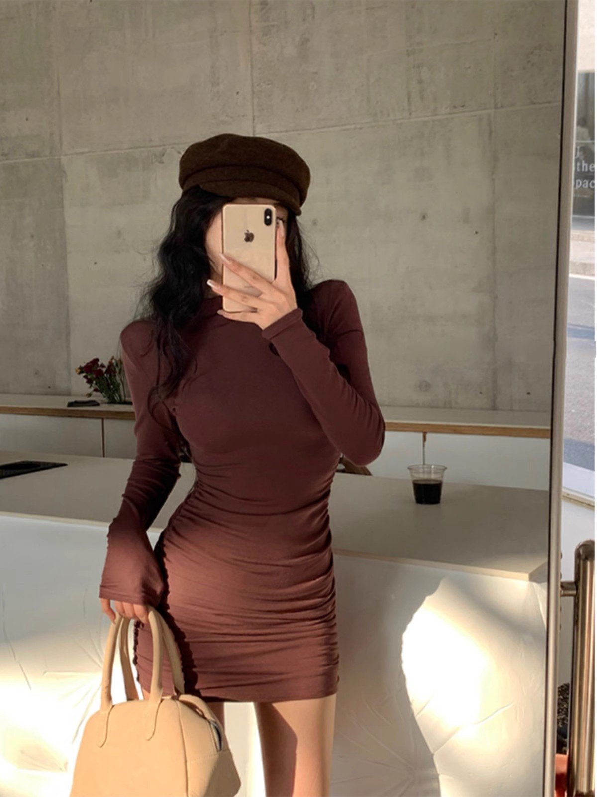 美拉德咖色针织内搭连衣裙女秋冬性感辣妹
