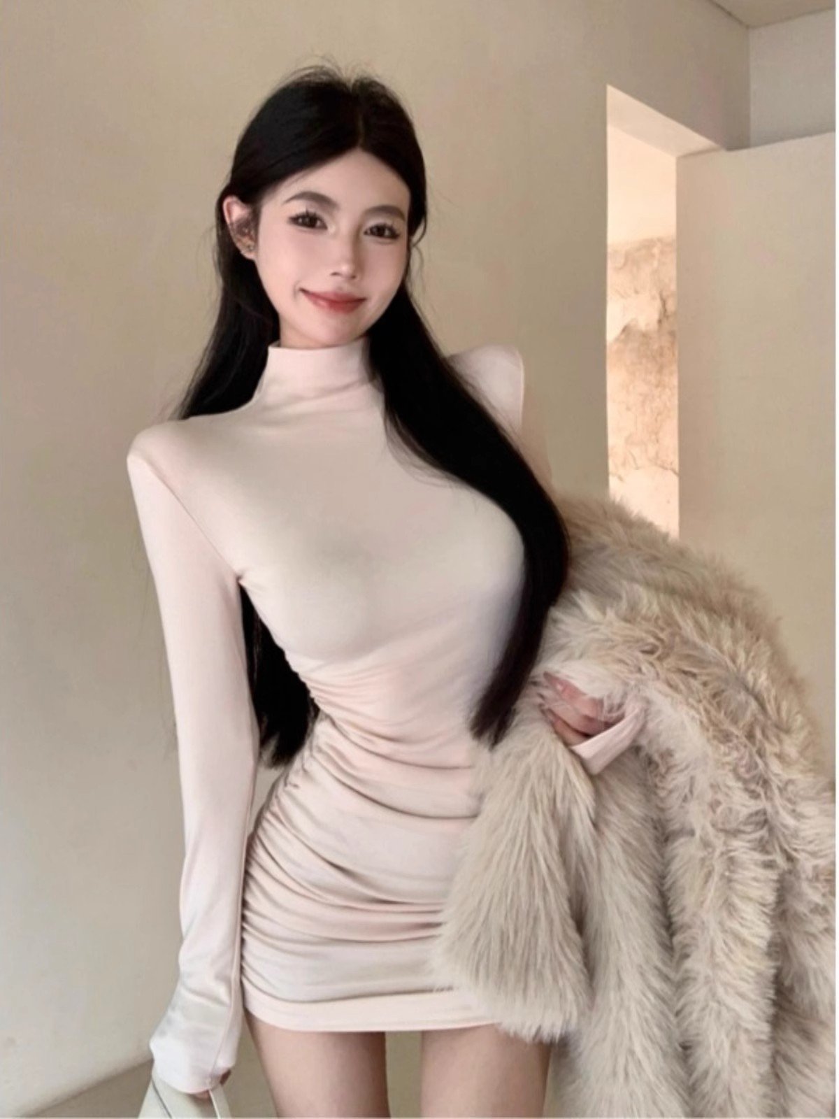 性感辣妹长袖T恤连衣裙女秋季收腰修身包臀