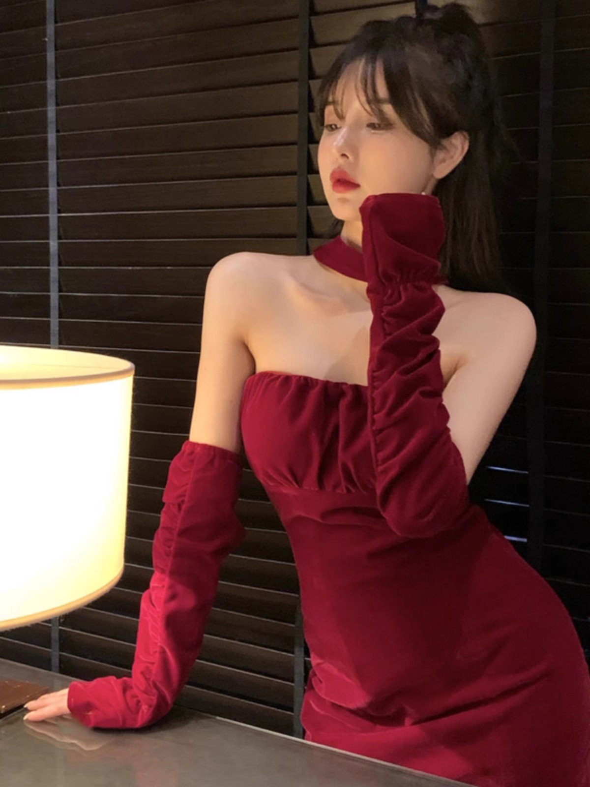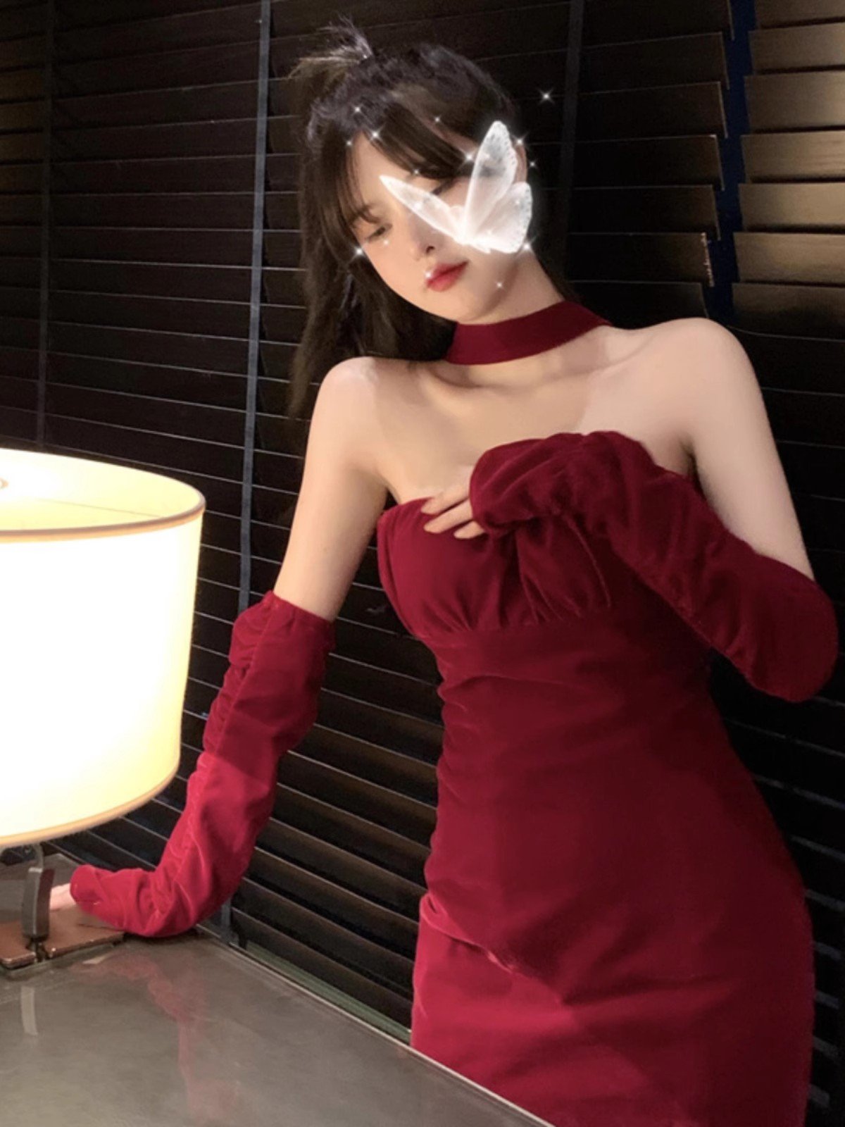 红色抹胸连衣裙女秋冬季圣诞穿搭性感丝绒
