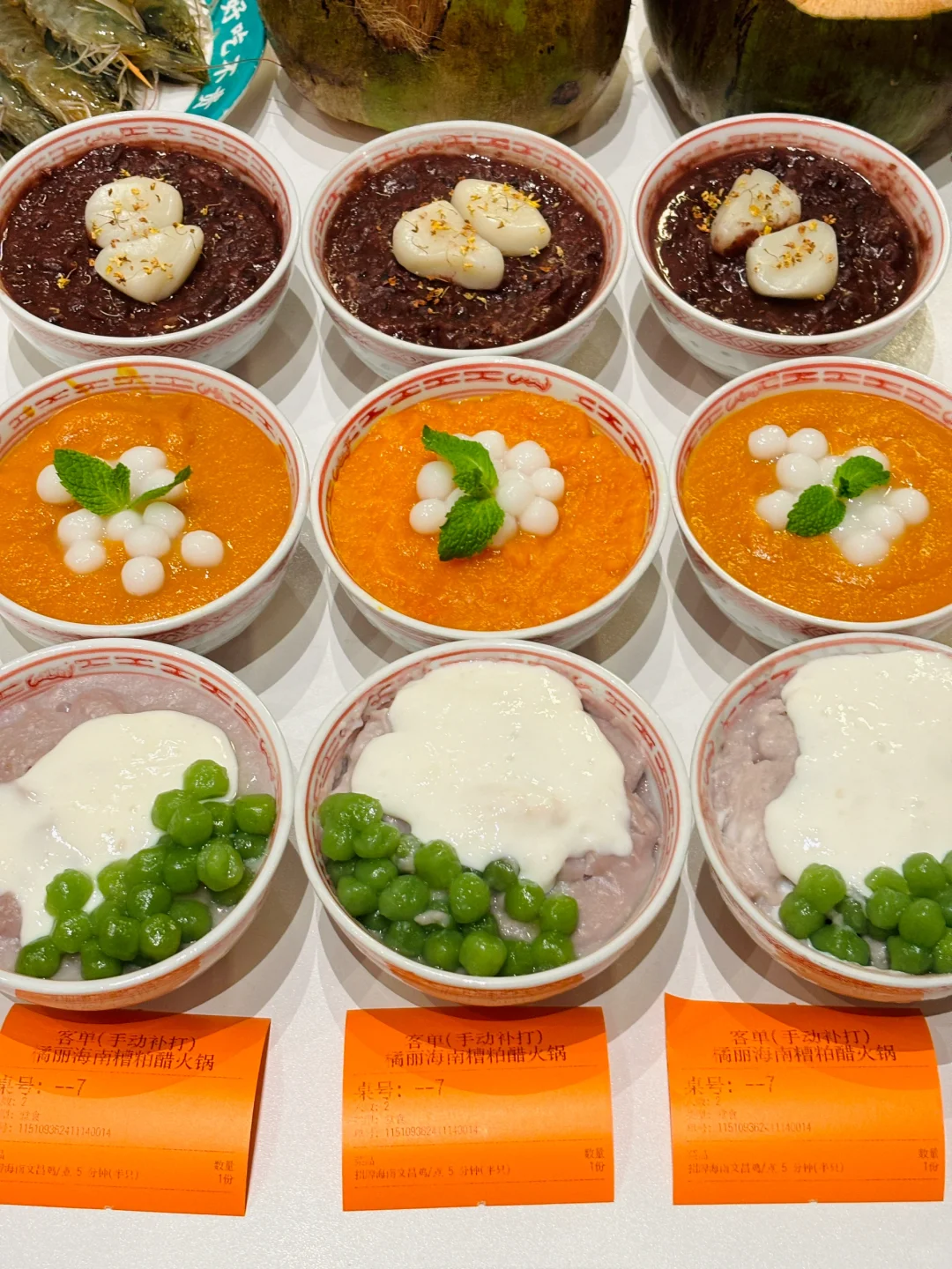 又来吃橘丽啦!!! 感觉他们家完全没有创作瓶颈的 拍照出片📷火锅好吃就算了!! 甜品也上新的ju快☝️ 今天去尝到了🆕出的冬日甜品🍮 ✨酒酿芝麻碗、红豆年糕汤和奶香南瓜羹 每一款都好看又好吃~餐前先来碗热乎乎的甜品 真的很有幸福感♥️ 吃了两年都吃不腻的火锅♨️ 也只有这家啦!!!