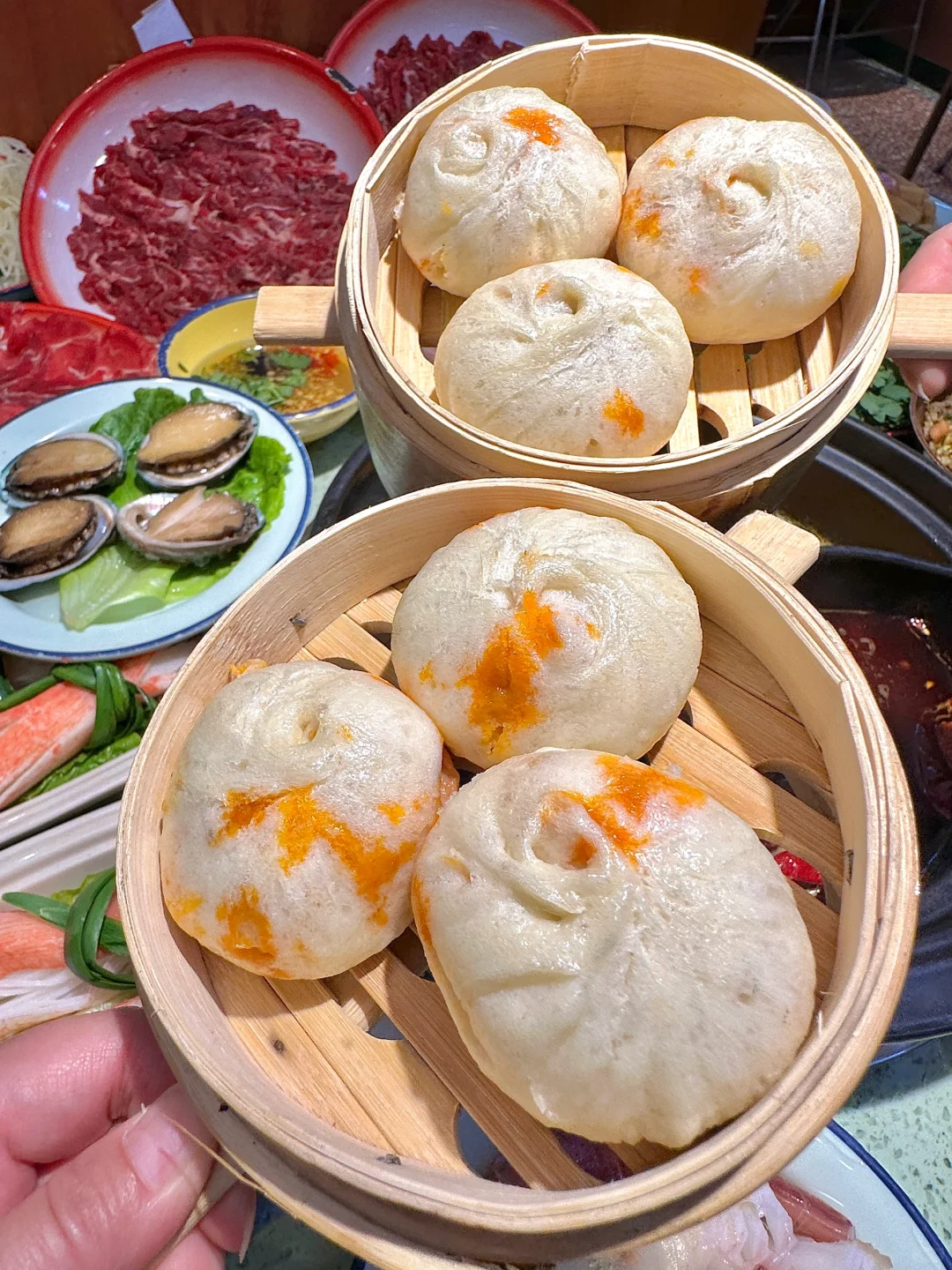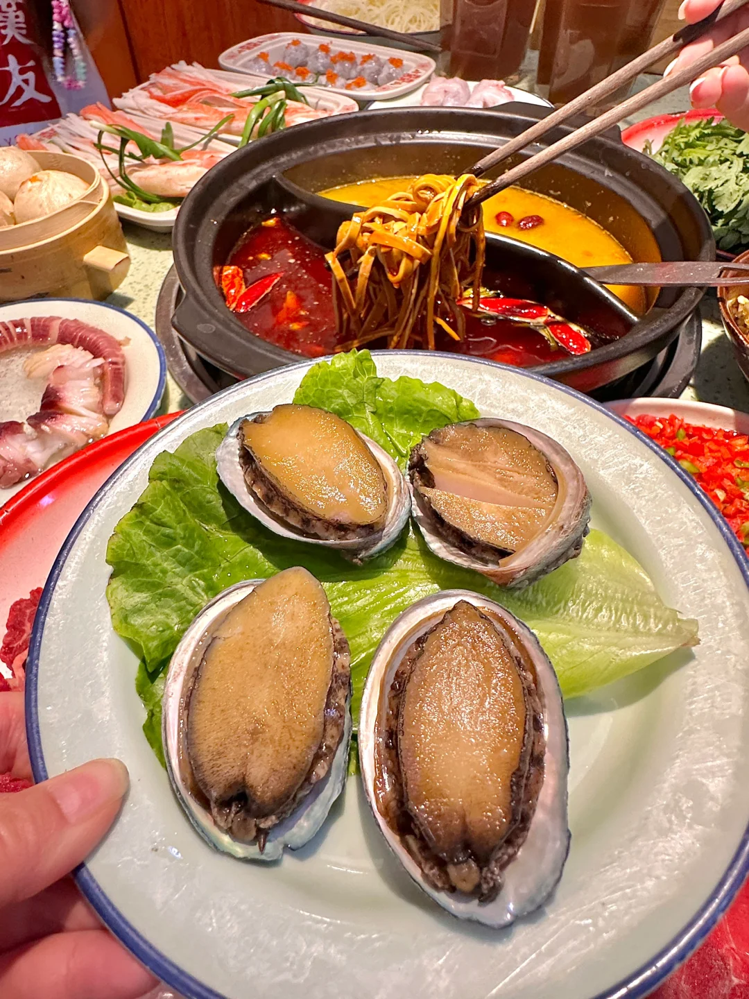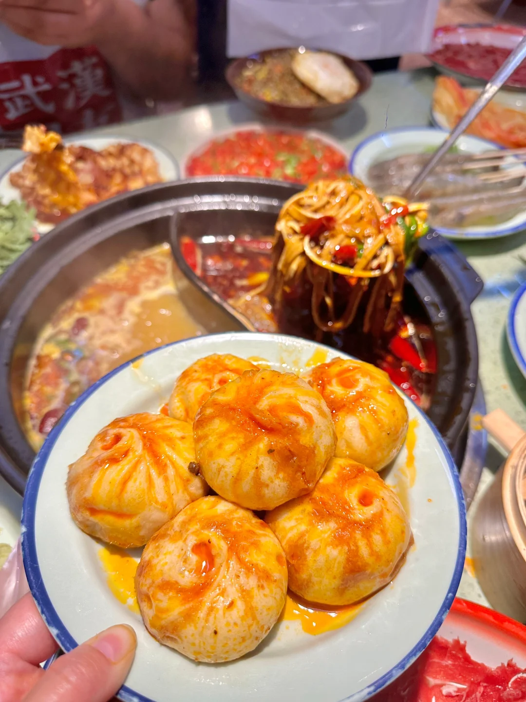 每次来江汉路一定会刷的老火锅,人均小几十吃一桌子狠菜~还有好几种一块的素菜,说他是火锅届 的蜜雪🧊城,一点都不为过! 新品辣么大章鱼足震惊我了! 真的又大又长,热辣Q弹,吼吼吃~ 千丝蟹柳,红油里面滚一滚,神仙都站不稳~😋 还有红油牛肉包子,直接吃、下火锅都不错! 安利纯正牛油红锅底and海鲜锅~ 鲜切吊龙、牛蛙、基围虾、黄骨鱼…… 涮牛油锅,又辣又香又麻!好吃晕了! 越吃越上头,real神仙锅底!!! 不辣的海鲜锅忒鲜,涮虾滑、笋片、青菜真 的jujuju香,汤都可以直接喝~