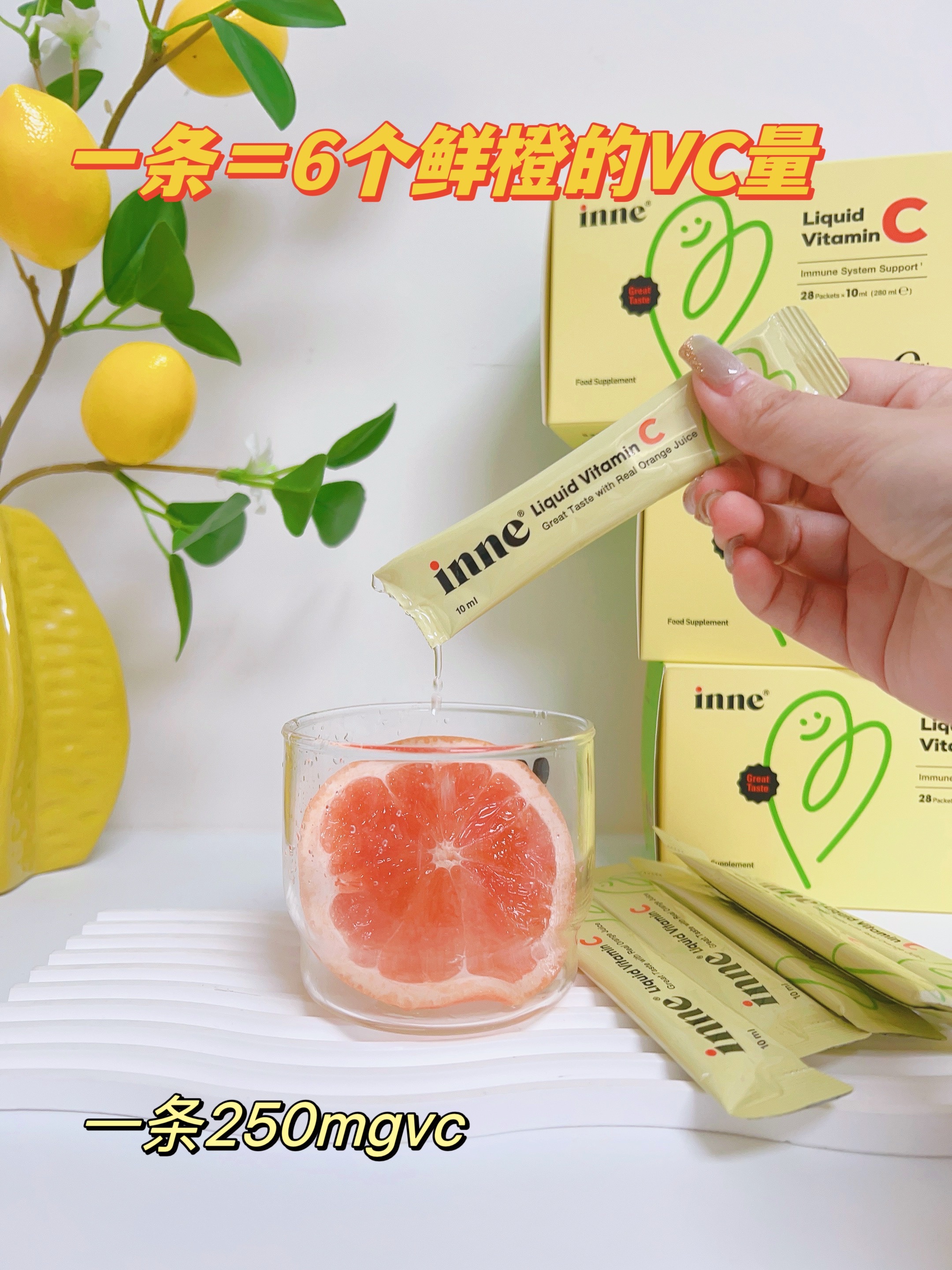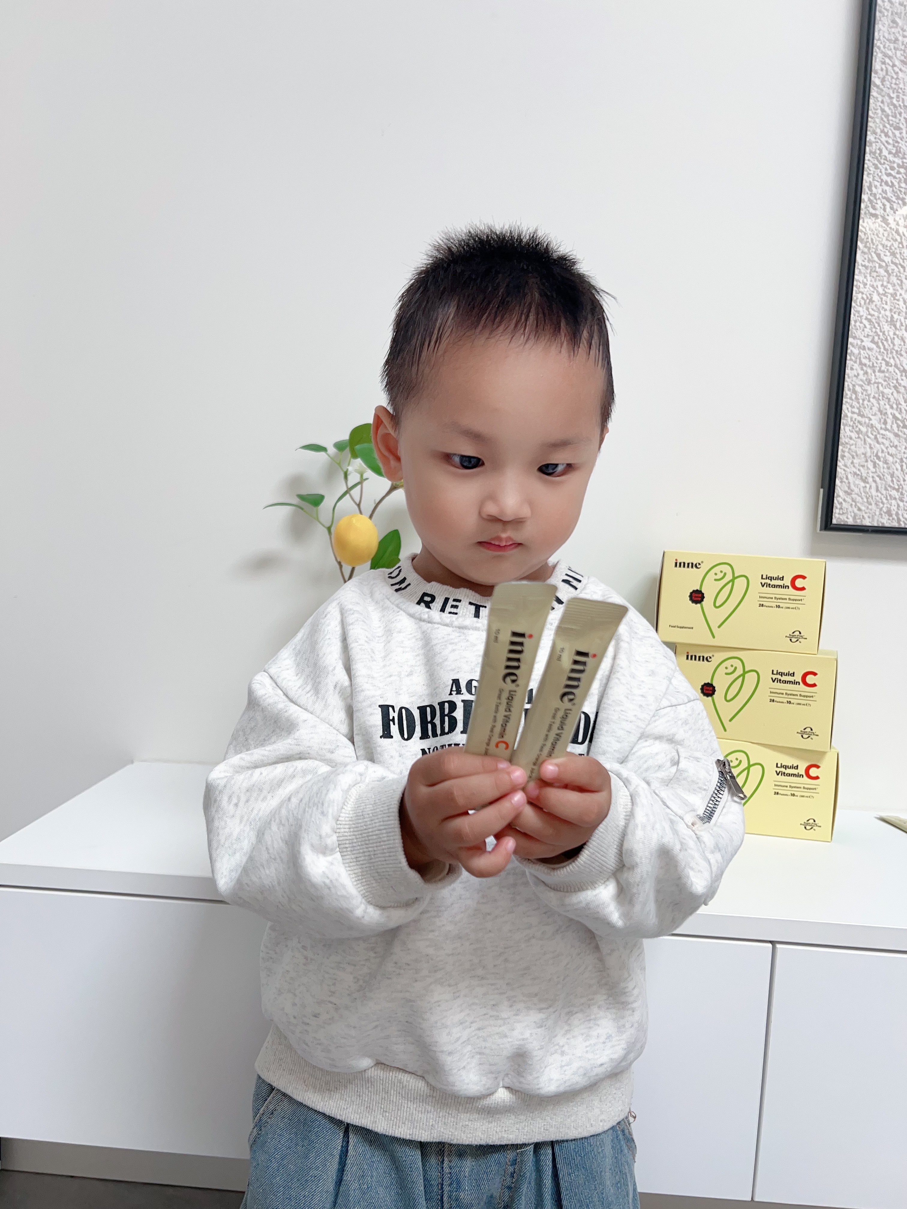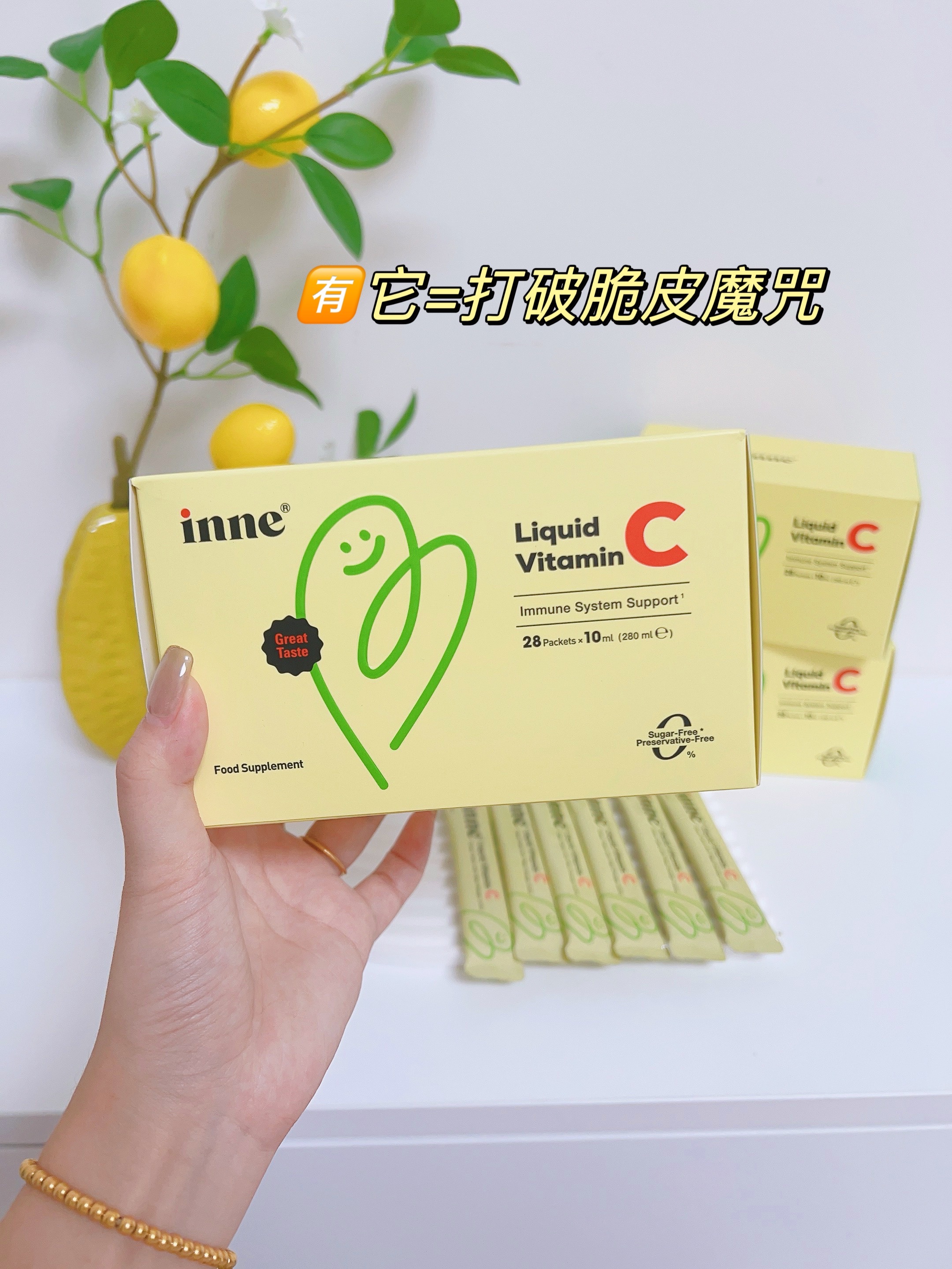 秋冬换季小朋友真的有点风吹草动就不舒服, 尤其是入了园,三天两头请假 最后还是决定先从补充VC做起 但小朋友就不爱吃蔬菜水果,还好有inne 维生素C 味道是酸酸甜甜的橙子味,对小朋友来说像在喝 橙汁 小小的一条就含250mg的维生素C,相当于6个 橙子的VC量 液体VC比固体的更好吸收 酸酸甜甜不卡喉吸收利用率更高!对宝宝的肚肚也超级亲和~配料表也是特别干净0糖0防腐剂 姐妹们听我一句劝,家有脆皮宝宝必囤这个unne维生素c