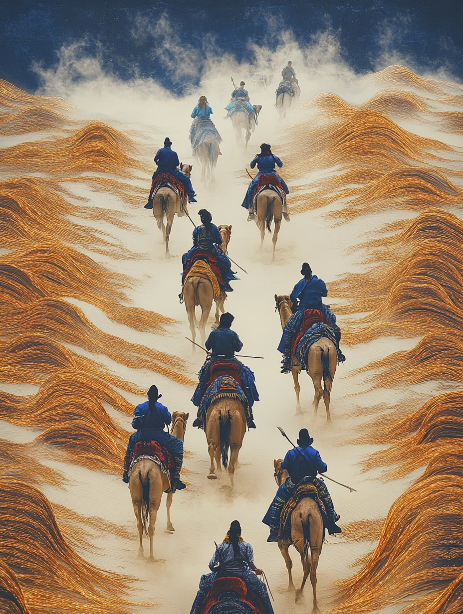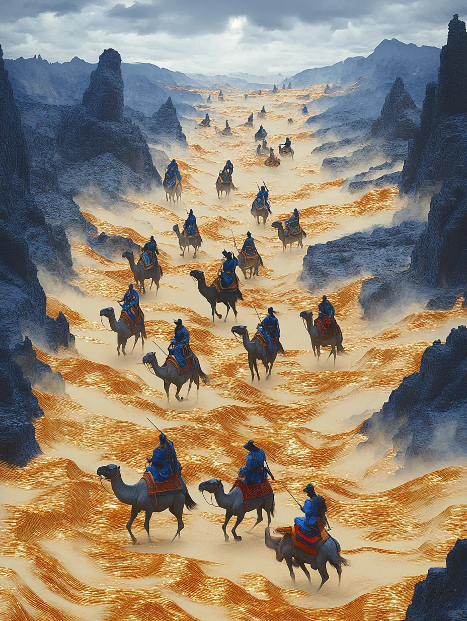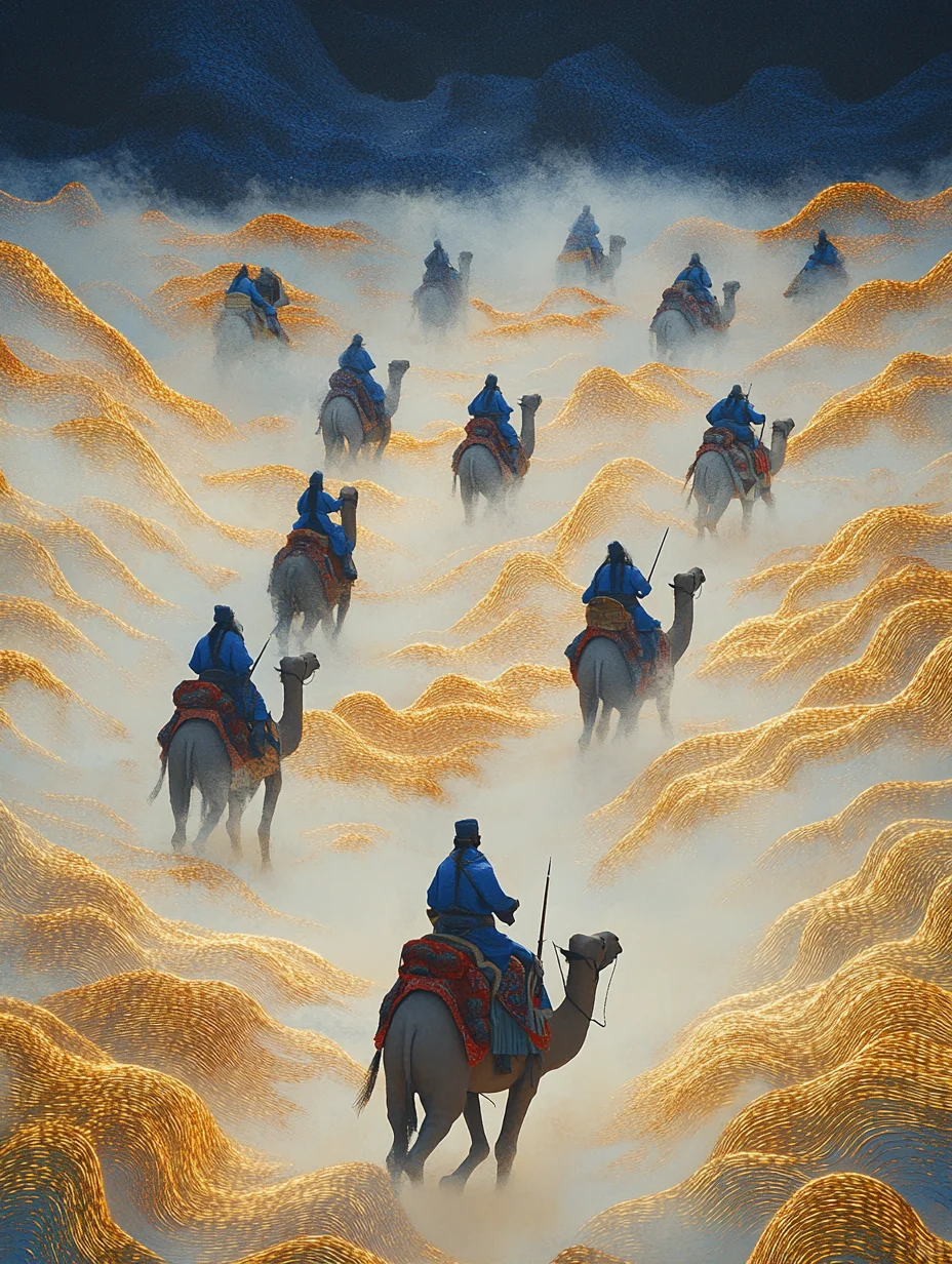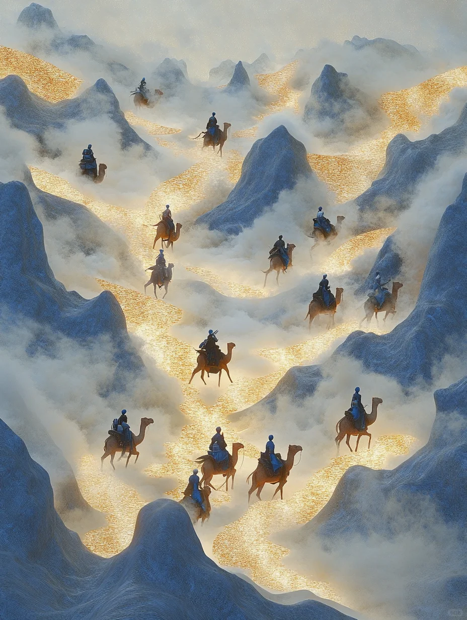 古道西风瘦马 山河社稷图 穿越时空的画卷 江山如此多娇 把诗词画在中华大地上 丝绸之路 中式美学 新国风 绘画 沙漠