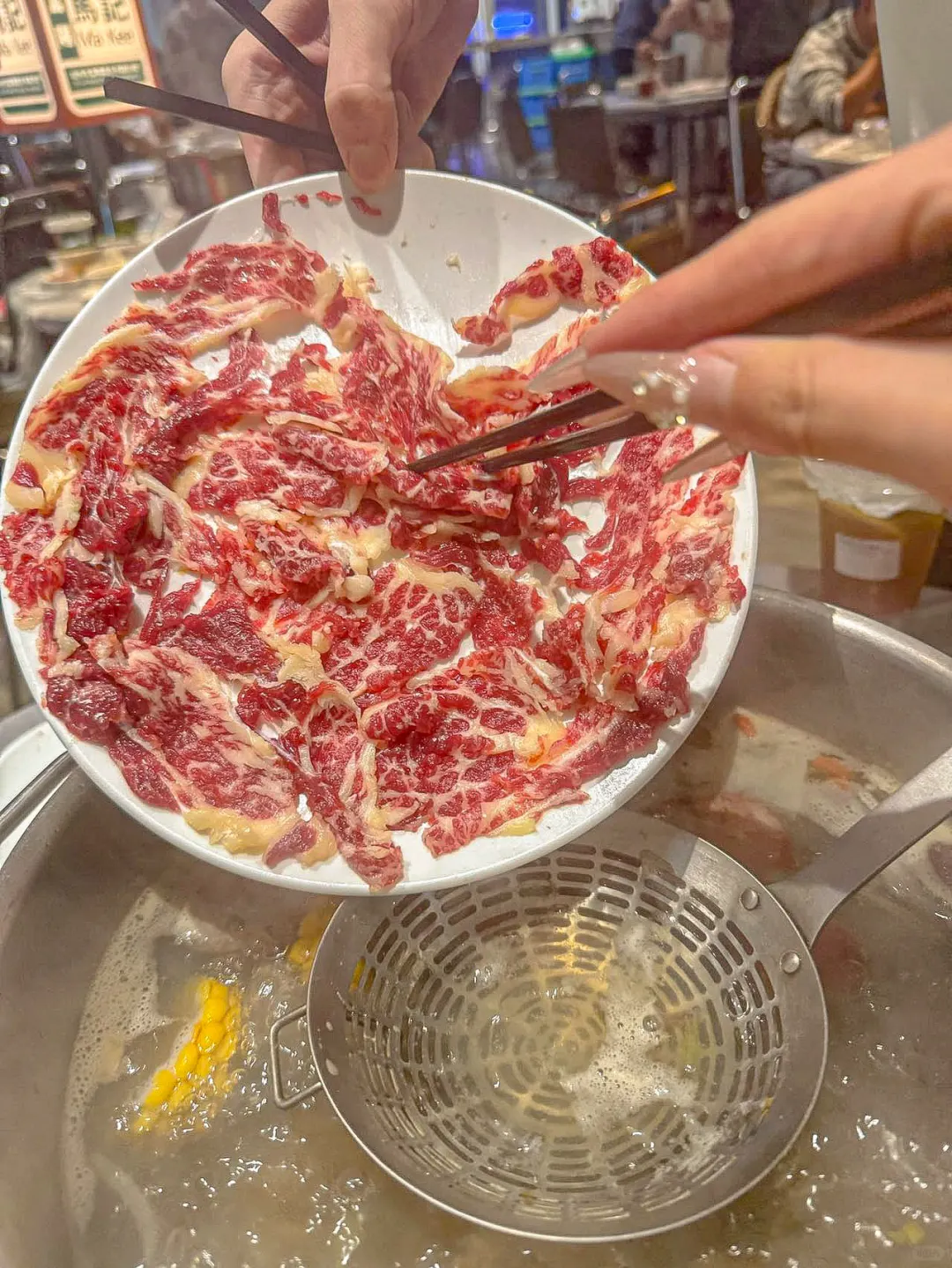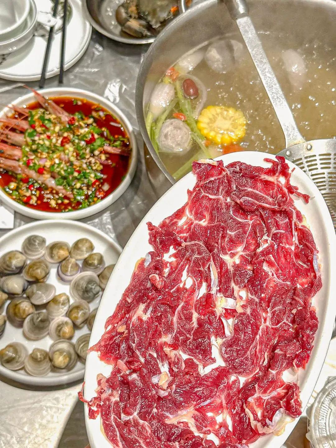 每次来富阳办事情,都要来这家! 它家的潮汕热鲜牛肉火锅🍲真的没有对手 尤其是这个季节吃上一锅热乎乎的火锅 真的也太巴适了吧~ 店里面的人很多,可见菜品点口感很绝! 基本吃过一次就会是回头客总来吃‼️ 他们家的食材都非常的新鲜 屠宰场就在附近呢,都是热鲜牛肉 超级爱雪花牛肉,纹理清晰 牛肉的品质也是能吃的出来的👍 肉质鲜嫩紧实,嘎嘎好吃!!! 还有脖仁,匙炳等等~ 全部都是现切明档的牛肉 而且在这里拍照也非常的出片📷呢