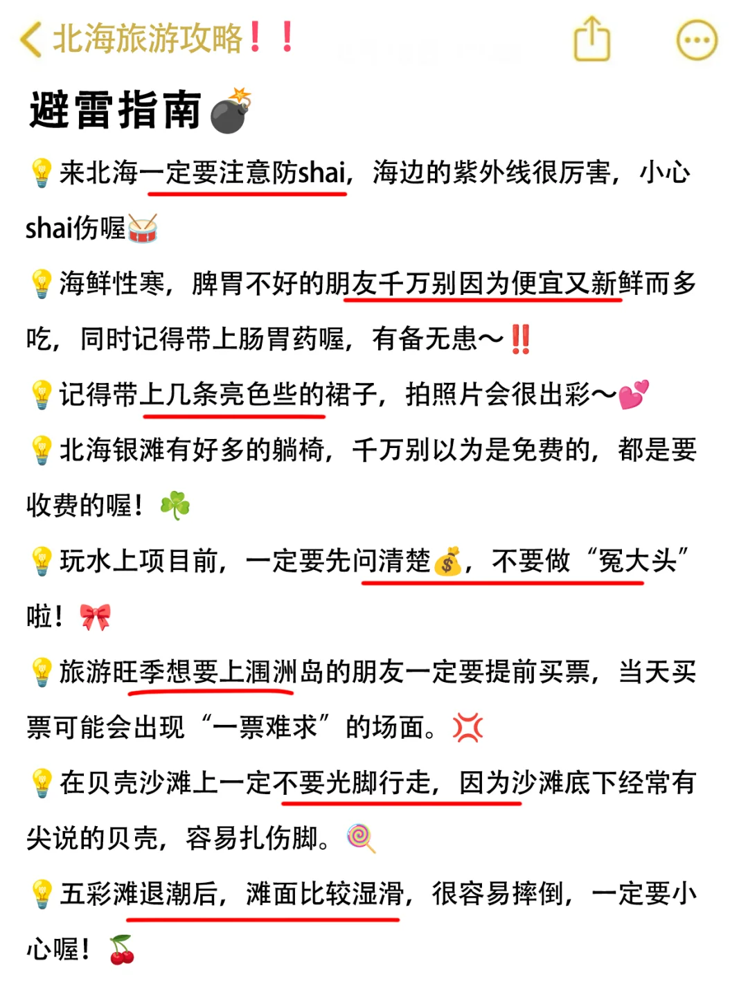 去了北海一趟🚈,回来之后emo了!!!北海的消费💰并不高,但是没有做攻略就去了..踩了不少坑💥,三天花了好几千想想都心痛啊💔!其实去北海玩一趟千八百的足够了,因为好多景点都是免费的!今天把这些注意事项总结出来了📢,好让大家提前避避雷!希望去北海的集美都能刷到及时避坑😭!