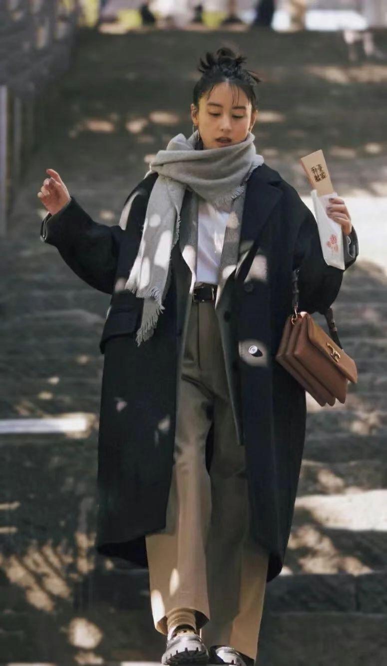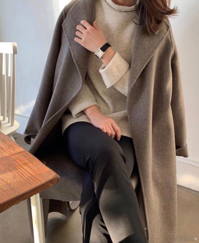 👉10度左右的可以穿大衣,内搭亮色调的高领打底衫[赢牛奶],需要开会的可以把衬衣叠搭在高领衫外,好看又脱俗[偷乐]