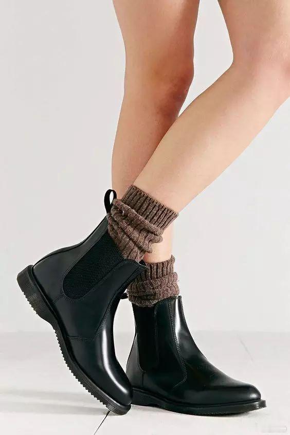 [偷乐]此外,不露脚的保暖穿搭同样可以兼顾美丽时尚,鲨鱼裤+高筒靴,羊毛西裤+切尔西短靴,卷边牛仔裤+马丁靴…..都可以作为上班时间脚下穿搭的选择
