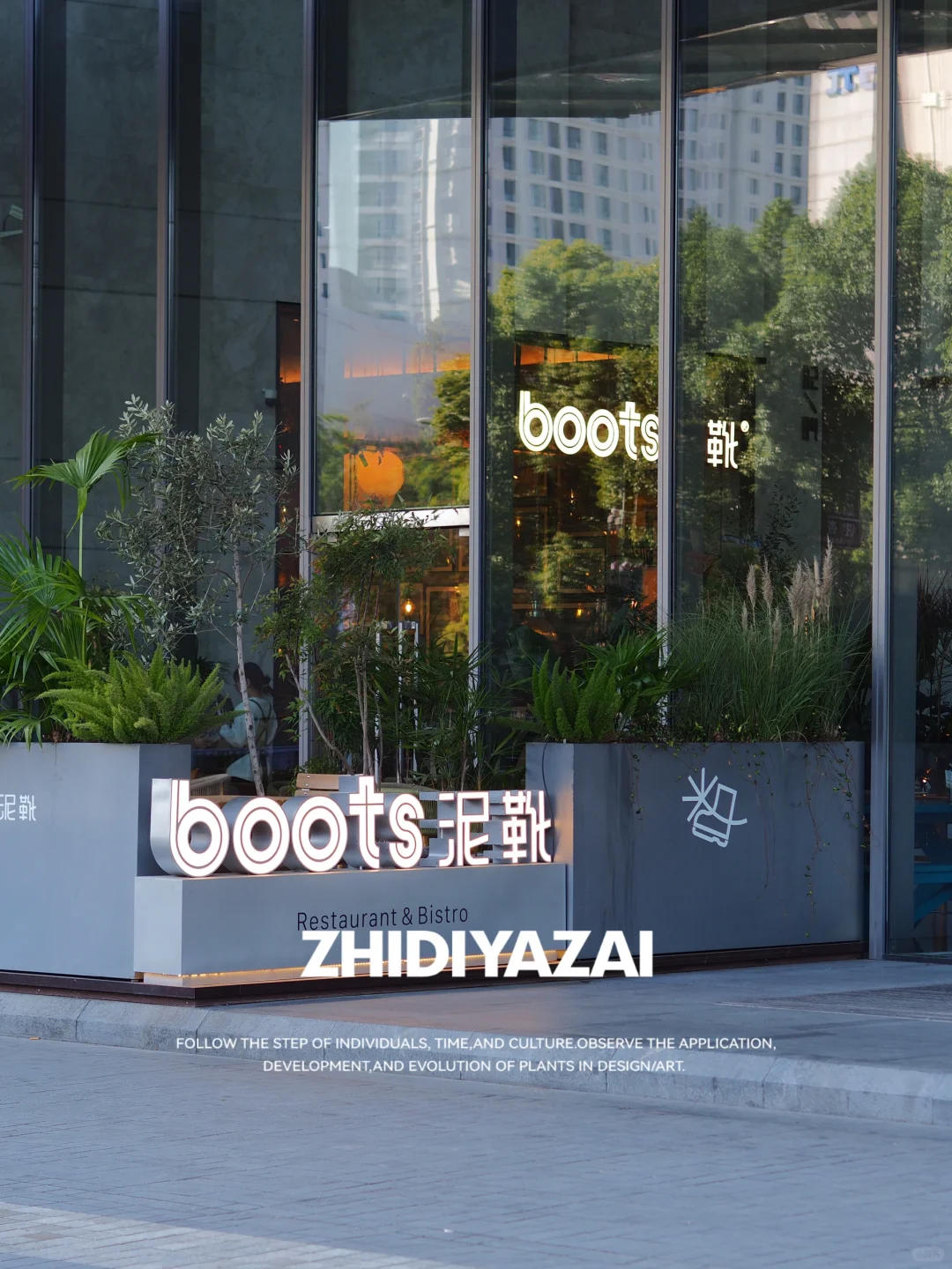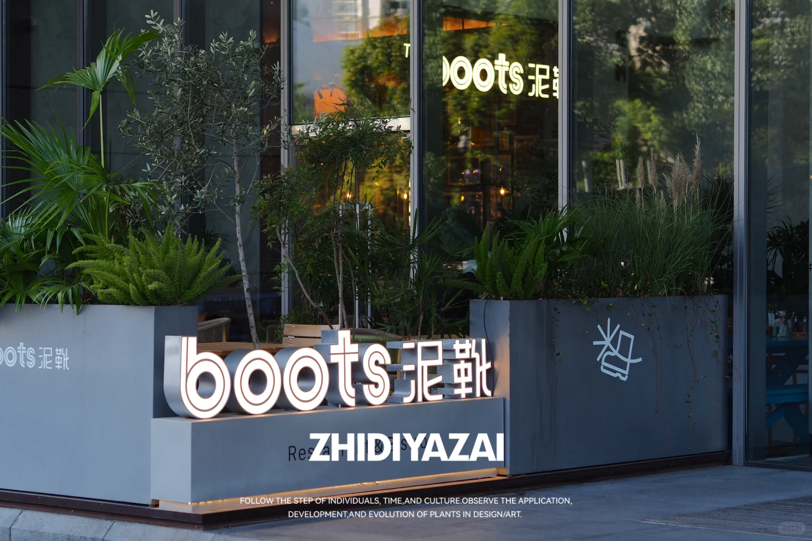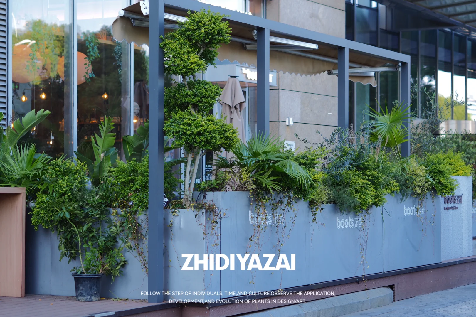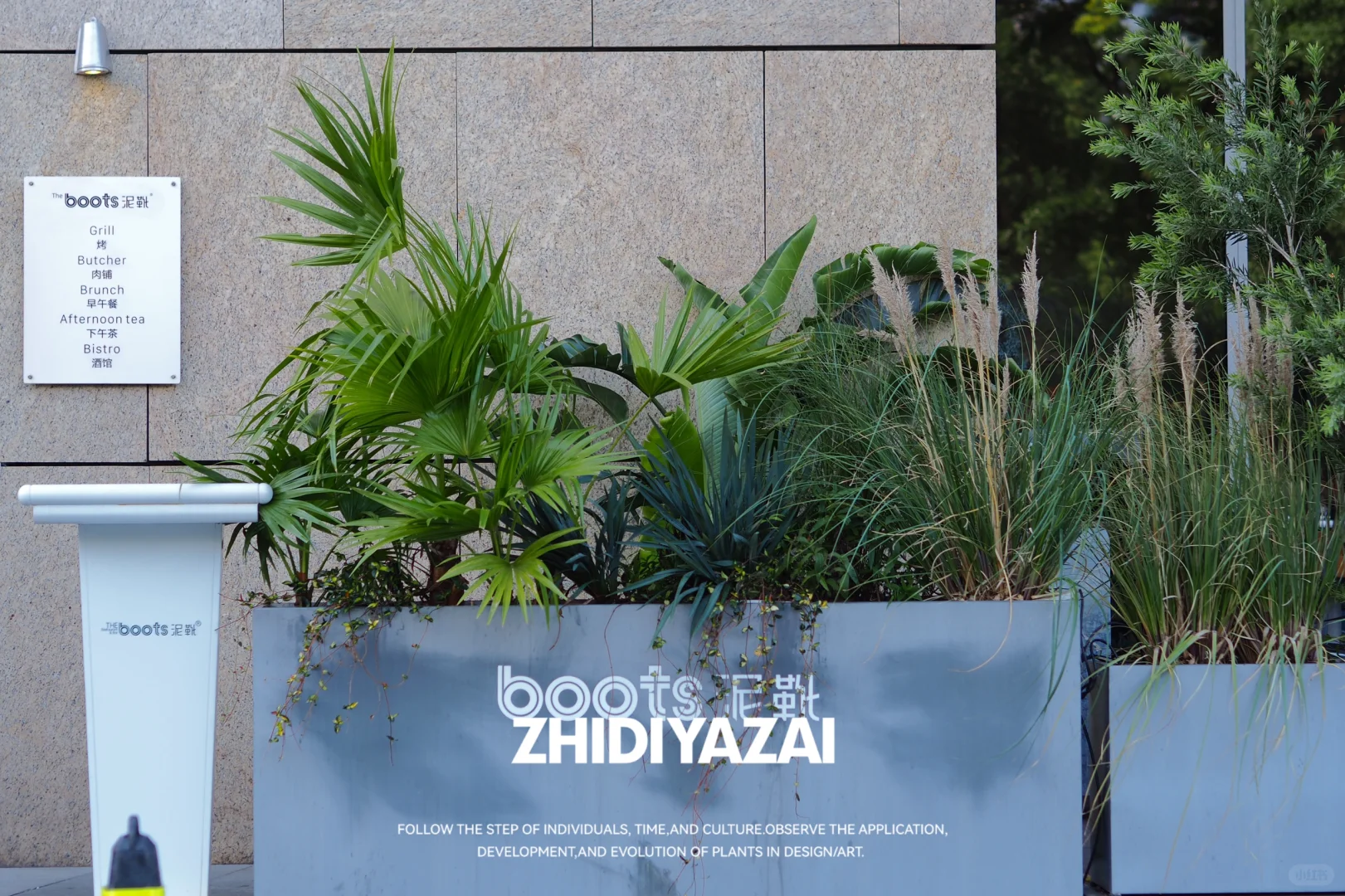 【植地雅栽】D E S I G N_外摆植物景观设计实景落地 📍The Boots泥靴 此次设计围绕店铺外摆区域展开,注重植物的适应性与易养护性,选择了适合南京户外越冬越夏的植物品种,打造自然惬意的外摆景观。 **花箱布局**:采用组合式花箱设计,高点植物选用意大利油橄榄、南天竹,营造竖向层次感;中段以蒲葵、芦苇过渡;低矮部分则选用狐尾天门冬、亮晶女贞,增加景观的丰满度与细节感。 整体景观以自然混搭风格为主,通过多层次植物的搭配,营造出轻松舒适的氛围,为外摆区域赋予更多的活力与吸引力。