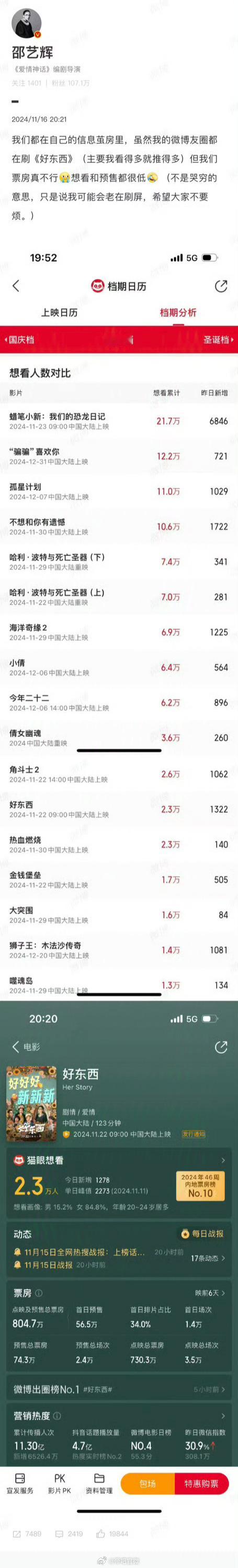 一部电影因为主打拳击项目,被数字女工爆吹,结果吹归吹,导演在微博诉苦说票房不行。