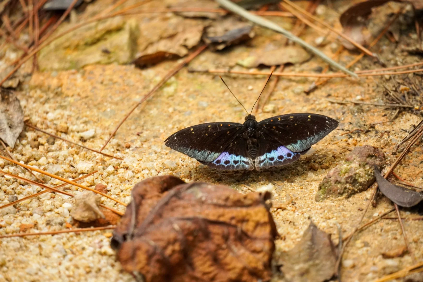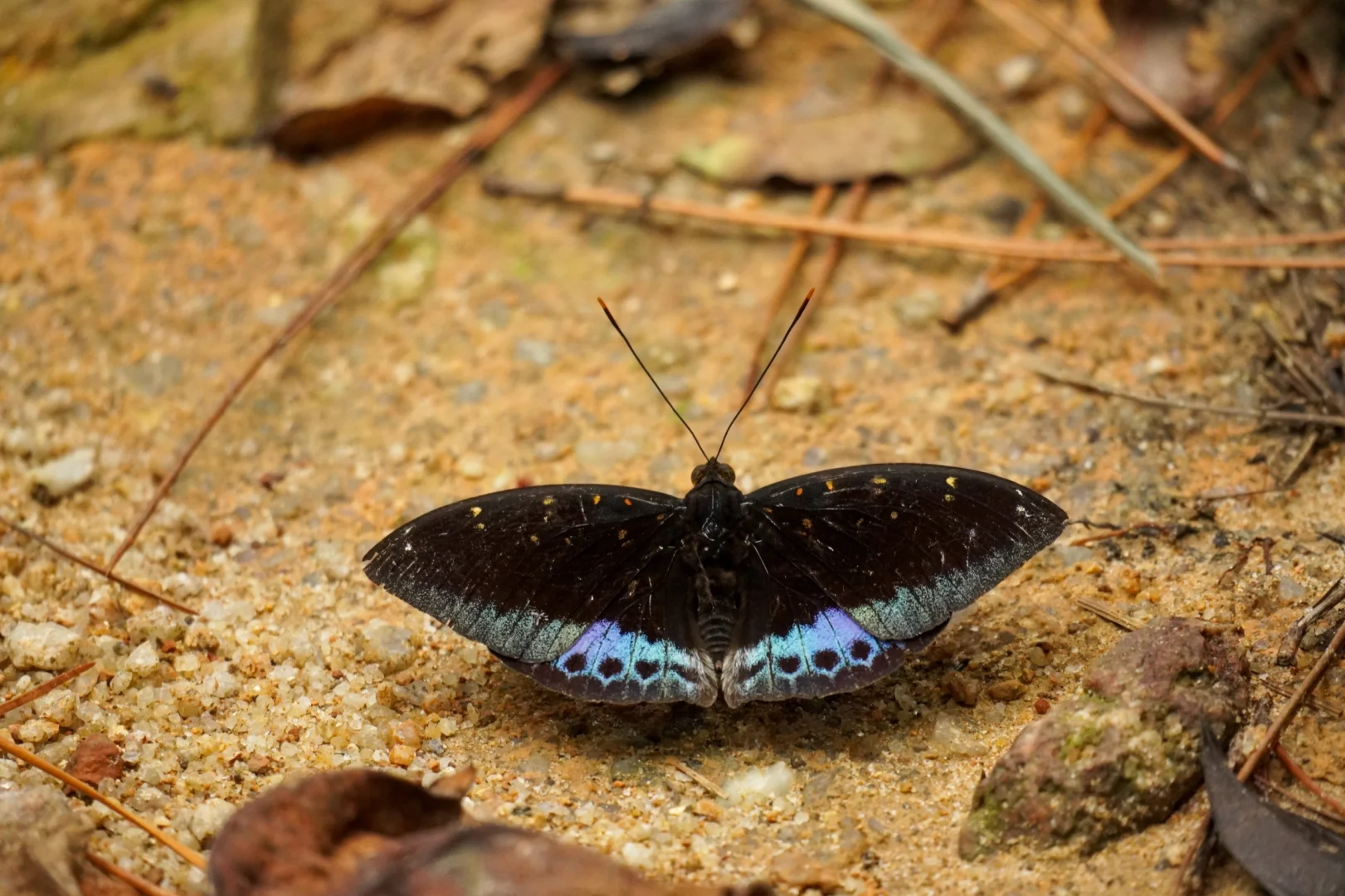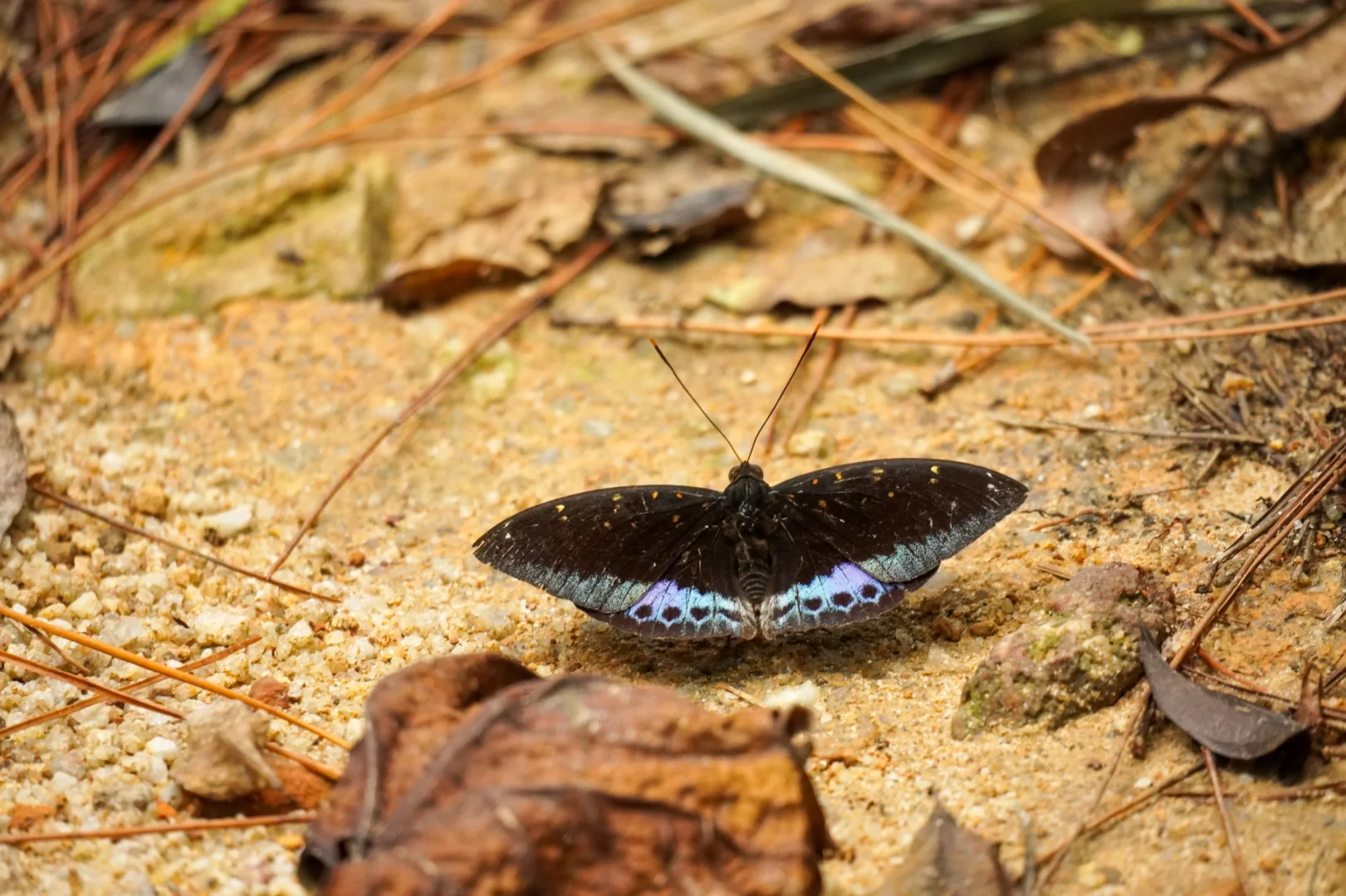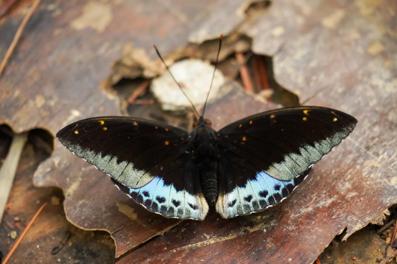 但如果有一天,你见过雄蝶,那你可能会惊讶:“这真的是同一种蝴蝶?”雄蝶展开翅膀的瞬间,仿佛拉开了一幅深邃的画卷——触角一路延伸下去,是浓烈的夜幕黑色,而当目光下移,一片广阔的“海域”随之展开。翅膀上的蓝与紫交织,像黎明前的霞光,光影流转,简直让人屏住呼吸。