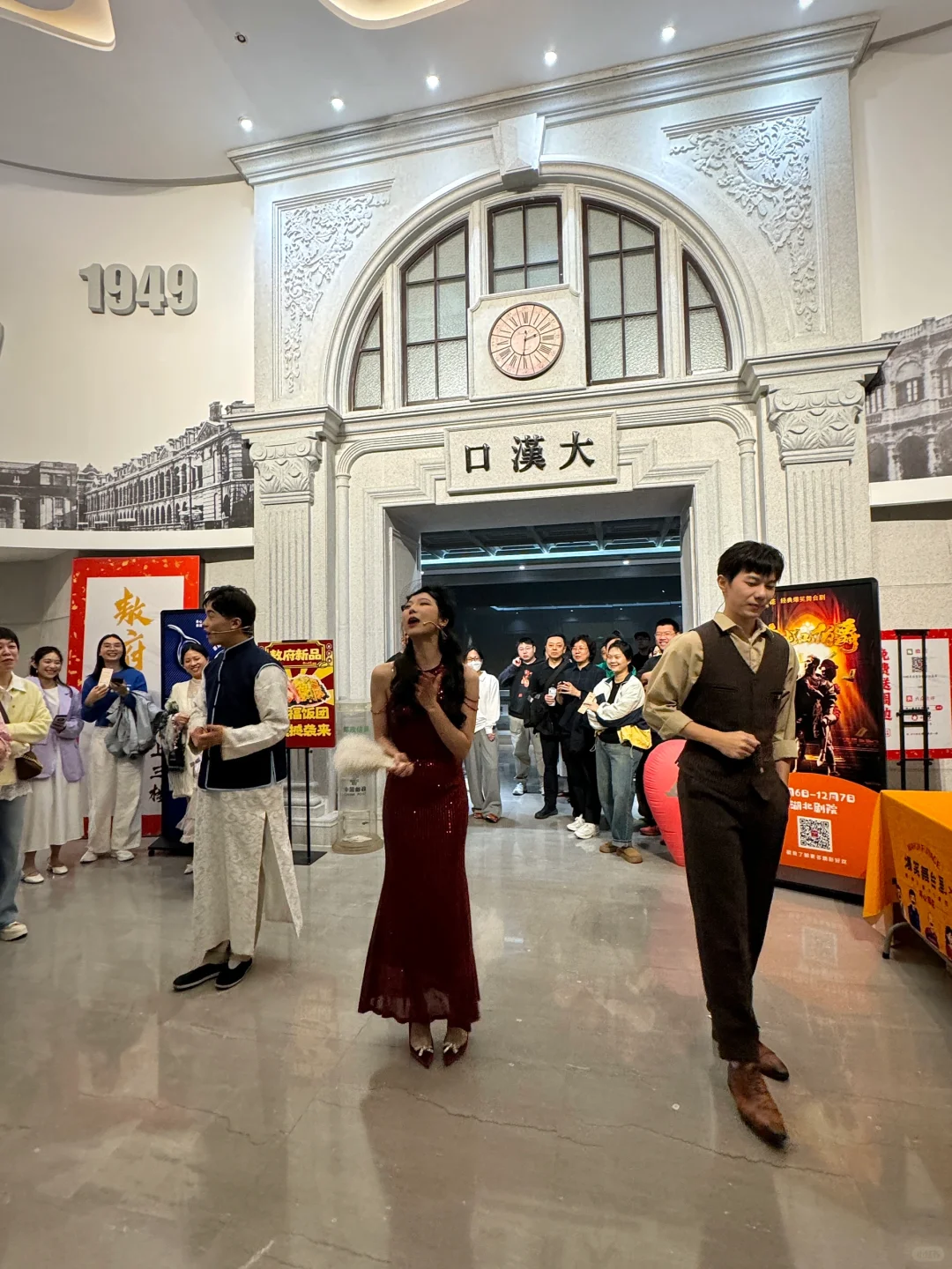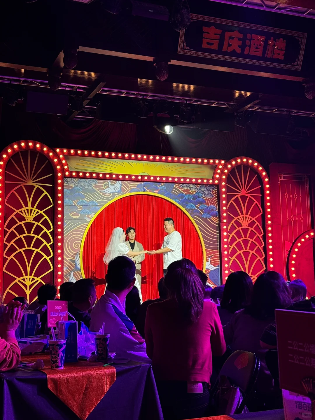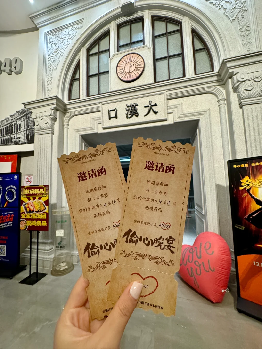 👏开心麻花武汉首个带餐沉浸式小剧场 升级版《偷心晚宴》2.0太嗨喽🎬 7:00演员们会在一楼大厅与观众们互动 互动完后上楼梯步行至“吉庆酒楼”🍷 美女演员亲自接待我们入座💕 精致的场地布景 感觉回到了一百多年前的老汉口 7:30演出正式开始🎬 我们就像敖老爷寿宴上的嘉宾一样 剧情很有意思 笑点真的巨多 演员互动贯穿全场 新梗老梗和朋友全程爆笑 演出进行至一半✔️ 服务员贴心送上小吃和饮品🥤 边吃边看!沉浸式体验“民国豪门”晚宴 E人的快乐就是和演员同台飙戏飙到爽!!