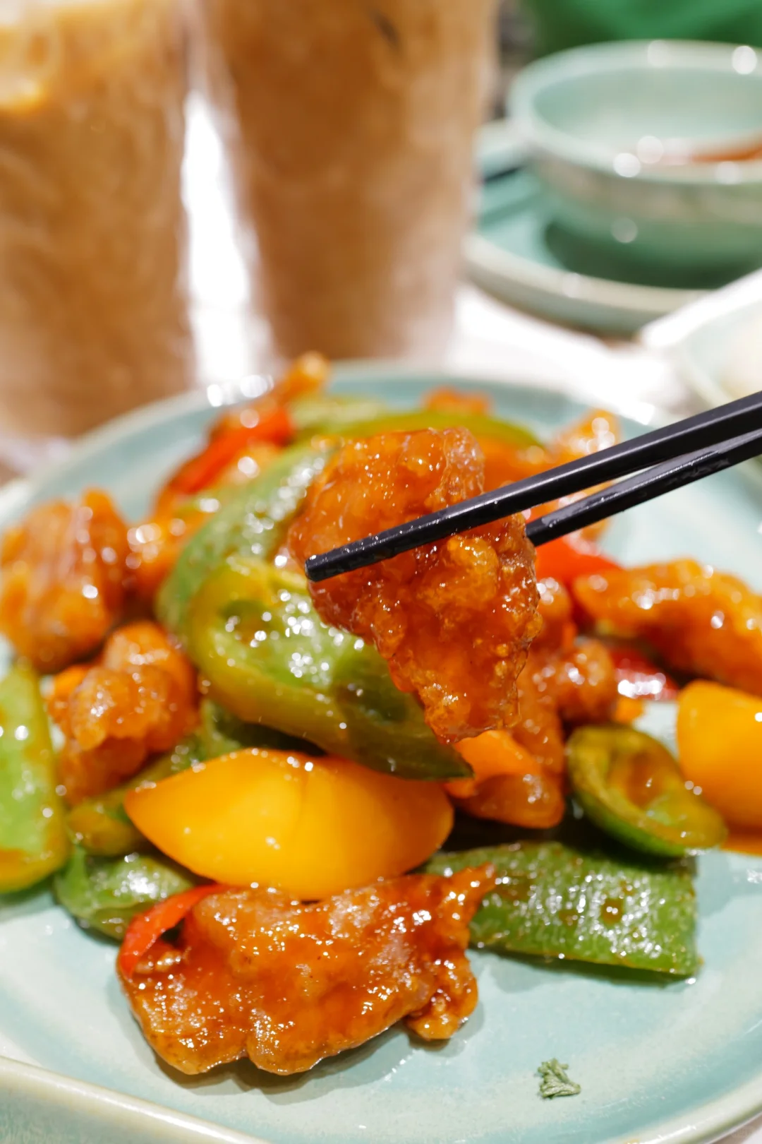 甜酸口味的咕噜肉,香港80年代风味地道菜品。用瘦猪肉炸到外壳酥脆内里嫩滑,而且不是菠萝咕咾肉噢,是蜜桃,口感更加特别呢,港味满满。