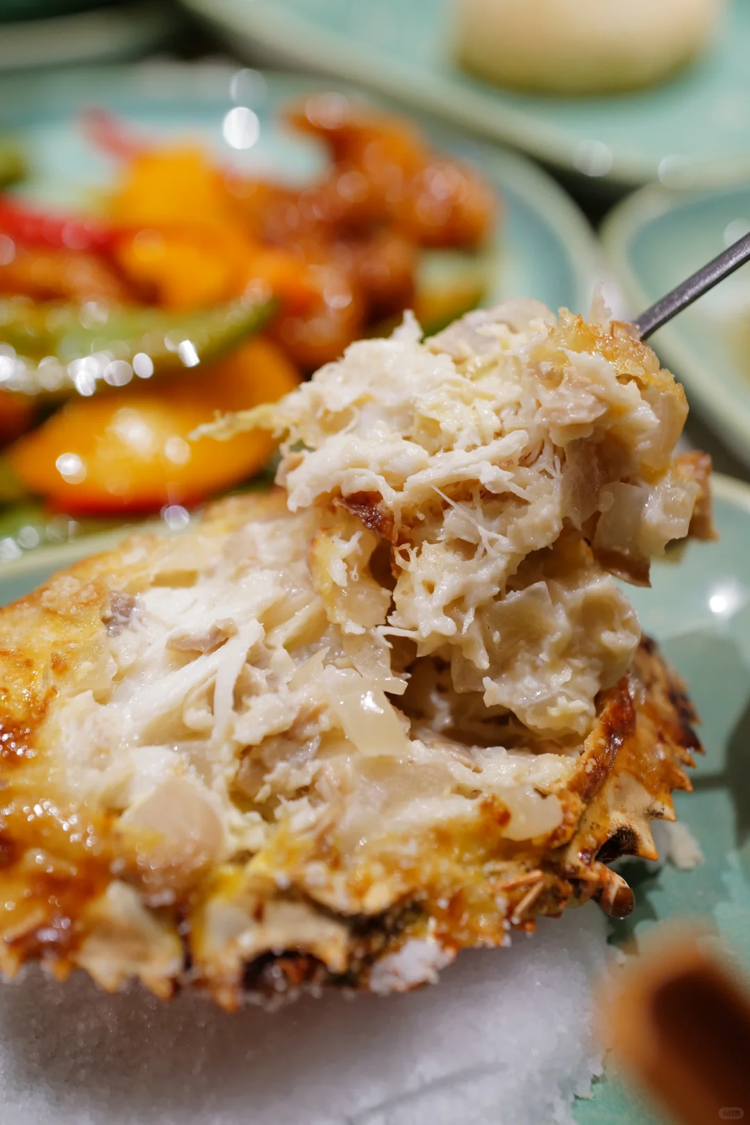 芝士焗蟹盖也是经典菜式了,里面是甜美的手撕蟹肉,搭配巴马臣芝士,蟹肉鲜甜搭配拉丝口感,真的是超爱~