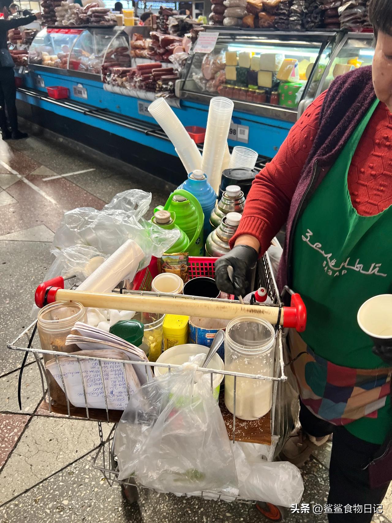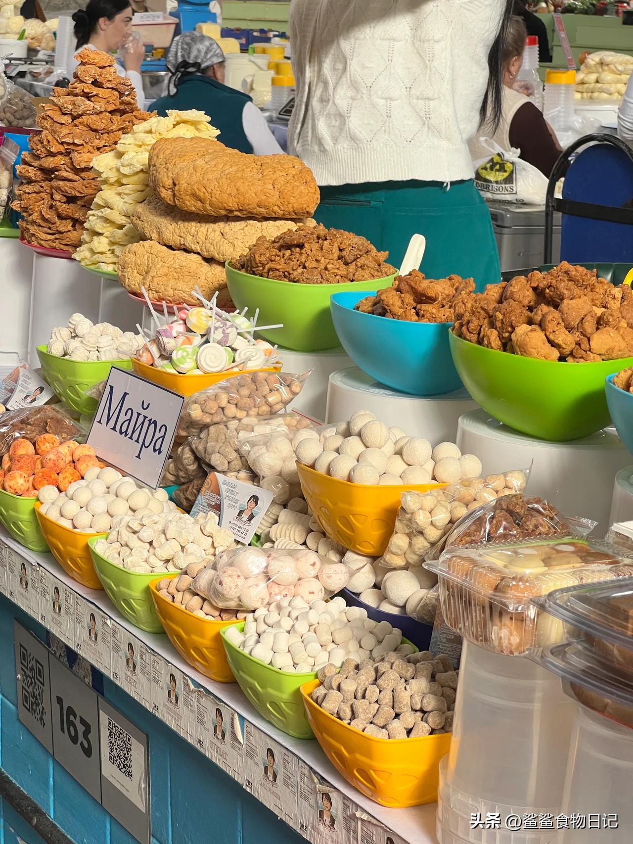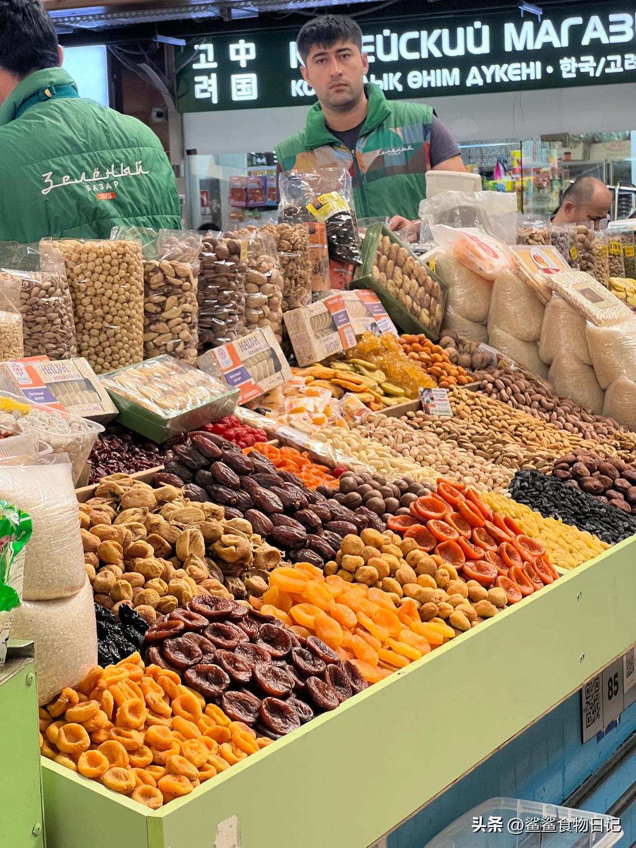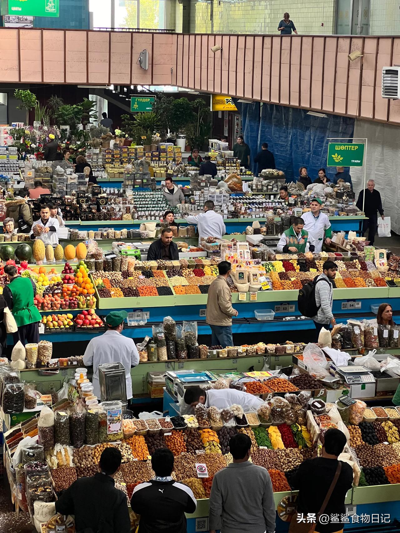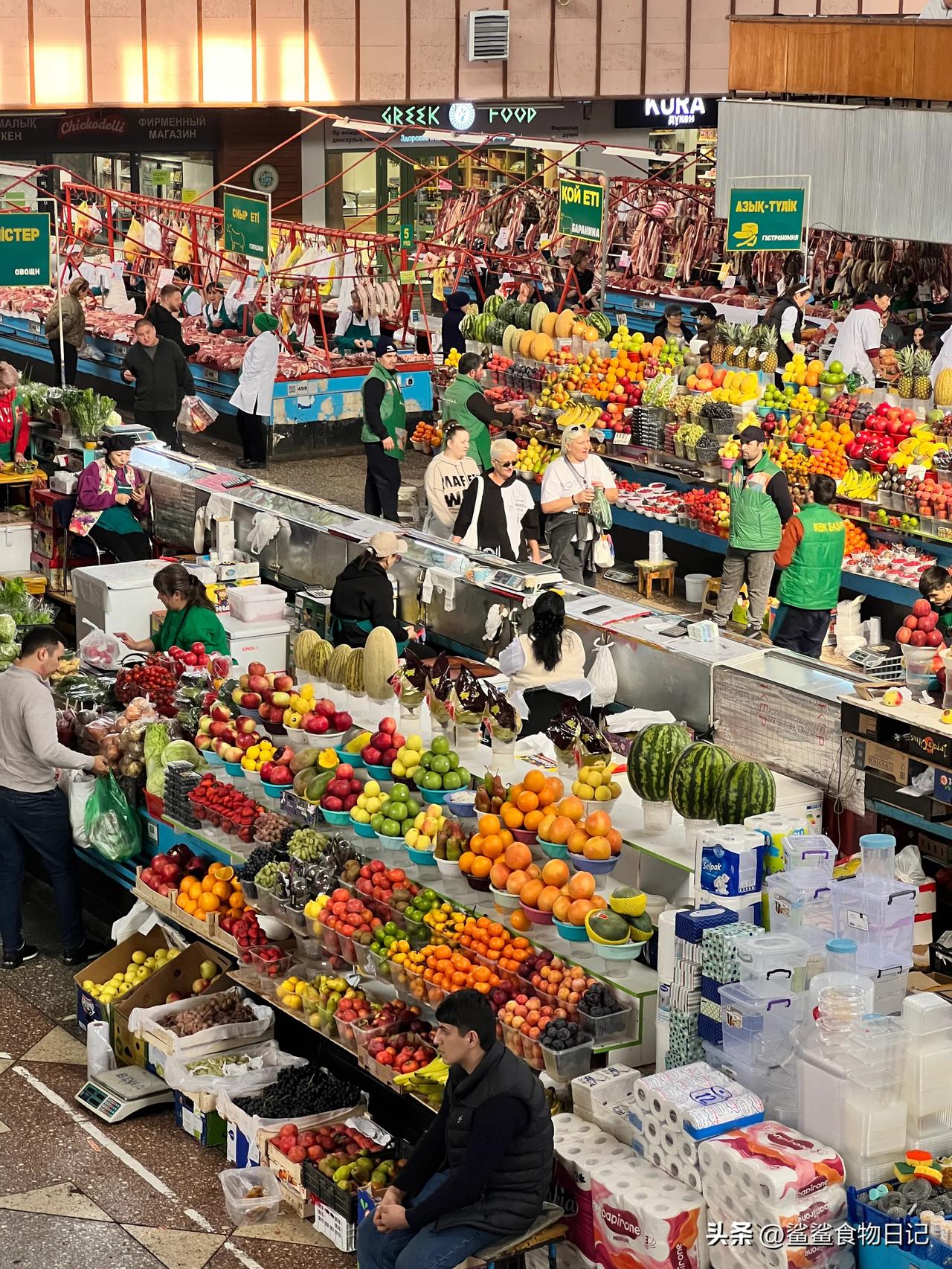 阿拉木图的绿巴扎Green bazzar,最早可追溯到1868年,作为阿拉木图最古老的集市之一,见证了无数岁月的变迁。即便在1927年更名,“绿巴扎”的名号依旧深深烙印在人们心中。 一走进市场,统一着装的摊主,玲琅满目的食品区,看得出来是统一管理的。 🥩肉类区:新鲜的牛羊猪马肉都有各自的分区,排列整齐。马肉摊主很热情,还会切下一块马肉肠给你试吃(我不敢吃,吃过的说说什么味?) 🥛奶制品区:最受当地人欢迎。丰富多样的奶油、奶酪、酸奶、奶疙瘩等让人目不暇接。 🍉果蔬区:摆放超整齐,强迫症狂喜,也是外地游客最多的区域。现在这个时候,苹果最多,我问了一嘴橙汁一杯是1500坚戈(20多元)属实有点贵。 🌰坚果区:跟新疆的坚果市场摆放风格差不多,卖的东西也差不多。可以试吃,看摊主心情。 🥬:值得一提的是,这里还有一排朝鲜族人摊位,卖朝鲜族拌菜腌菜,有些可以做成寿司卷。在阿拉木图看到这么多朝鲜面孔却是有点惊讶。 🏠绿巴扎周边:有纺织品、手工艺品、家居用品市场。从阿尔巴特大街方向走过来,还没到绿巴扎会经过一个五颜六色的毛线市场,专门卖各种毛线🧶和布料纽扣等。 绿巴扎有四个大柱子,每个柱子上都是一个餐厅或咖啡店。我尝试了进大门左边第一个柱子上的餐厅(卖石榴汁的摊位后面楼梯上去),点了一份牛肉土豆盖浇饭(菜单第7排那个1800坚戈),红茶和桌上的面包🍞都不要钱随便吃。味道非常好,牛肉入味松软无膻味搭配土豆泥米饭太香了,直接光盘! 🥤:一定试试推着购物车🛒在市场到处走的咖啡奶茶车!我点了一杯奶茶,现场给你泡的奶茶可太香了,200坚戈(3块钱)。 ⏰营业时间:周一不开门,平日每天上午9点到晚上7点。 消费提示:绿巴扎是体验阿拉木图风土人情的绝佳之地,但是消费相对有点贵,游览一下感受氛围很棒。若是游客购物,记得砍价。农贸市场巴扎 阿拉木图