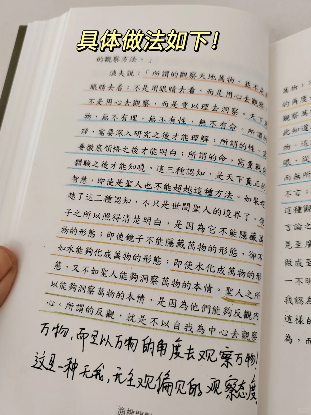 书中说:所谓的观察天地万物,并不是用眼睛去看;不是用眼睛去看,而是用心去观察;不是用心去观察,而是要以理去洞察!